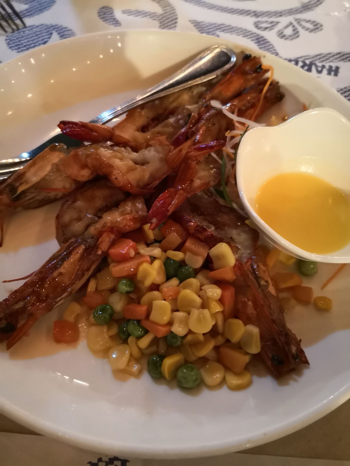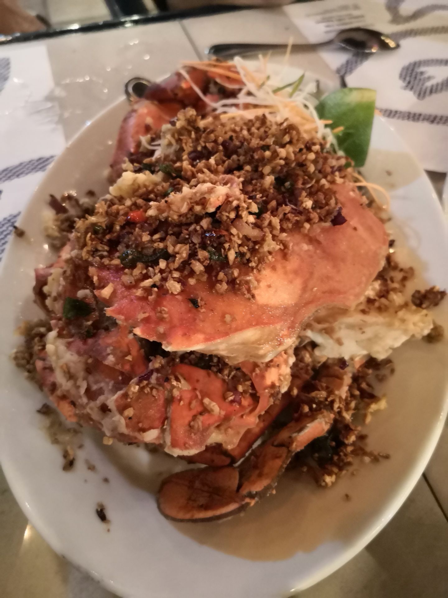 很好吃啊,海鲜都很新鲜,价格也很合理,4个人吃了人民币1000不到,还包括小费很好吃啊,海鲜都很新鲜,价格也很合理,4个人吃了人民币1000不到,还包括小费。这么大的螃蟹,和新鲜的海鲜超值啊。空心菜也很好吃,全部光盘。
