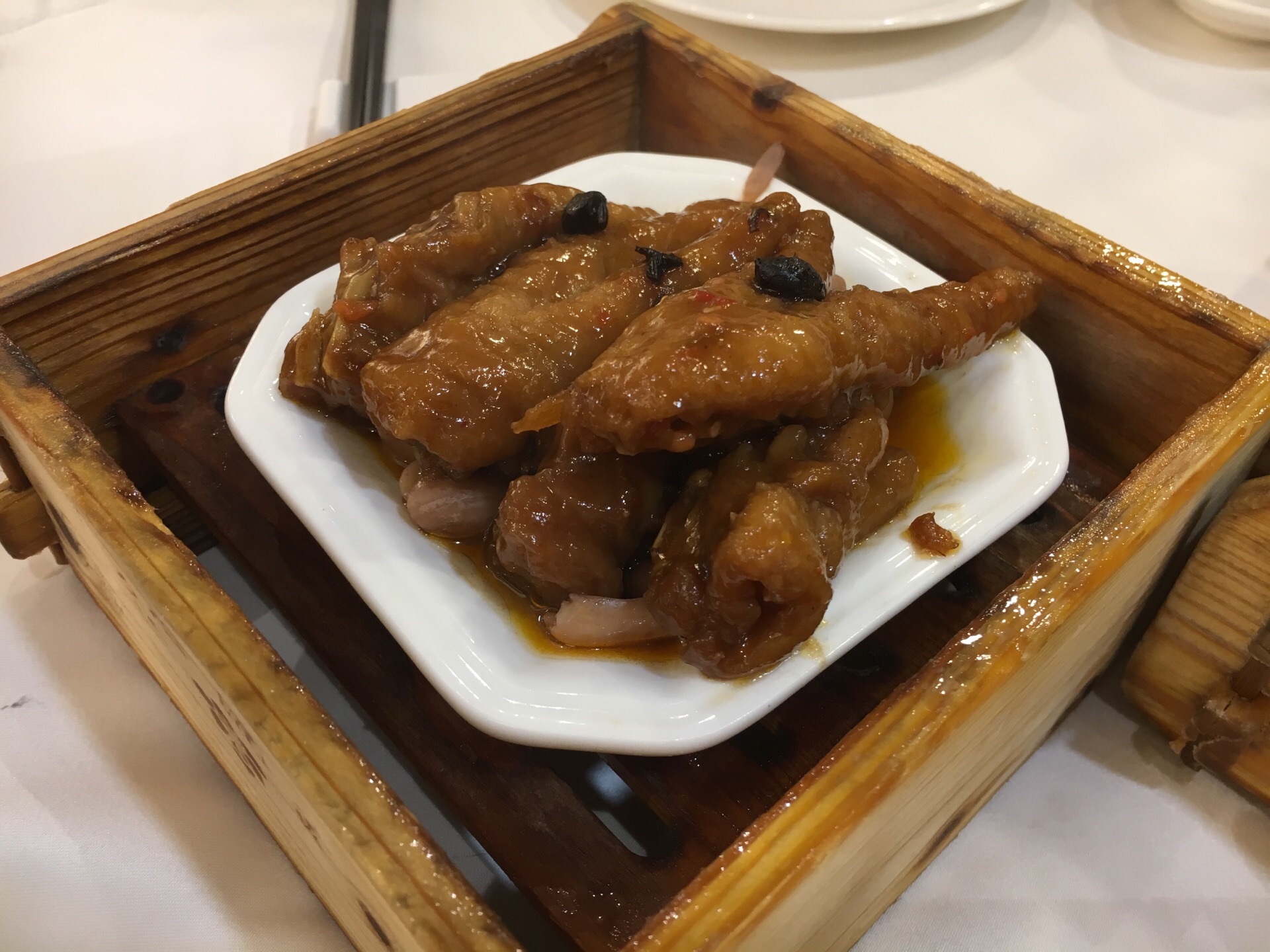 豉汁凤爪软糯入味,韭菜饺煎得外皮金黄酥脆,馅料饱满。早茶人不少,人气还是很旺的