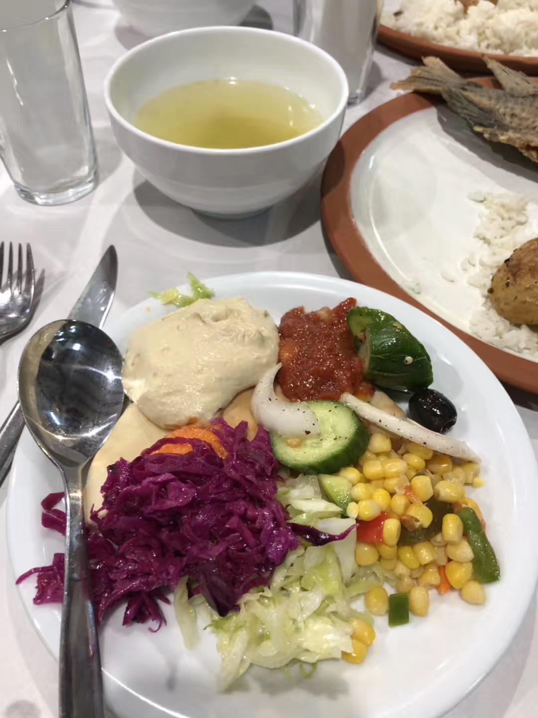 网友2019-02-14米饭,面饼、鱼虽然没有什么味道,但自己加盐后,我特别喜欢他们家的鹰嘴豆泥这家餐厅还可以 作为中国人还是吃的惯的 蛮好的。米饭,面饼、鱼虽然没有什么味道,但自己加盐后,我特别喜欢他们家的鹰嘴豆泥!