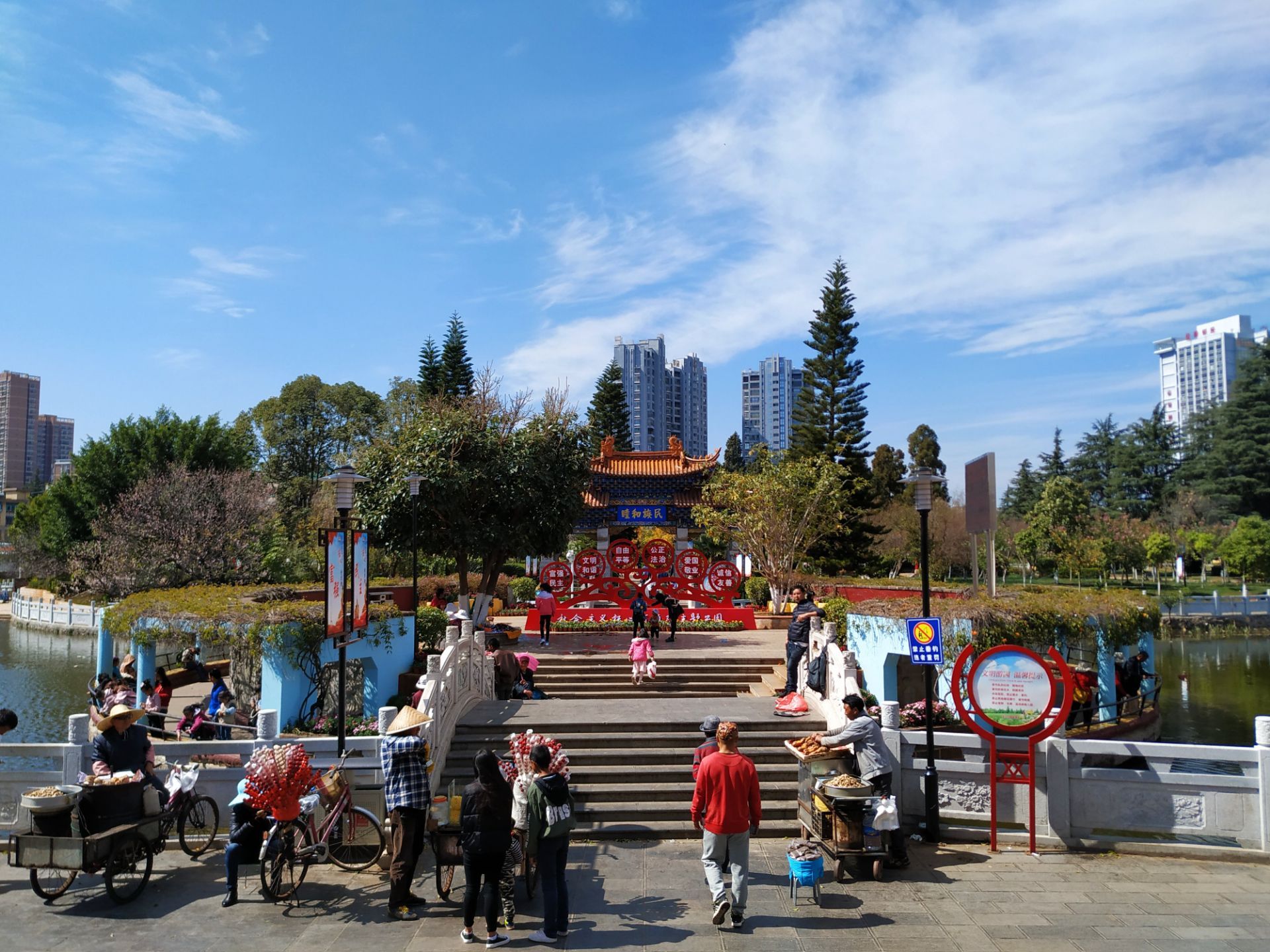 这个公园修建于八十年代,公园内风景很漂亮,有水、牌坊、雕塑和文化馆,桥也不错,桥上拍照很好看这个公园修建于八十年代,公园内风景很漂亮,有水、牌坊、雕塑和文化馆,桥也不错,桥上拍照很好看。草木绿化也做得很好,人气很爆。公园门口的餐饮店很多,内部还有卖花草的。