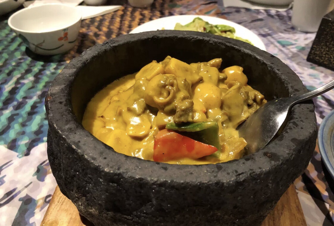 简约的一层让疲惫的味蕾暂时放松在家常美味的轻松自在之中,三杯鸡的鲜香,蒜香小排的浓郁,更少不了朋友之间的会心谈笑。二层西范儿的古着环境里,惬意地品尝着应时应景的精致西餐,却能意外在这么雅致的氛围之中享受烤鱼的大快朵颐,当充满烟火气的烤鱼从那些人声鼎沸的街边小馆移步到安静的诗意环境。不同于一层的简单,二层的静谧和雅致,让人与人之间的聊天更增添了切切私语或是促膝长谈的私密之感,那是在闲适的咖啡厅里所拥有的慵懒和放松,坐在复古的座椅之上,闲聊之间自然而然就已经深陷其间,回望从高高的房顶落下的彩色霓虹灯,那绚烂的光晕温馨地投射在二层的空间里,伴着低语或是浅笑的声音,卸下生活中的负累。