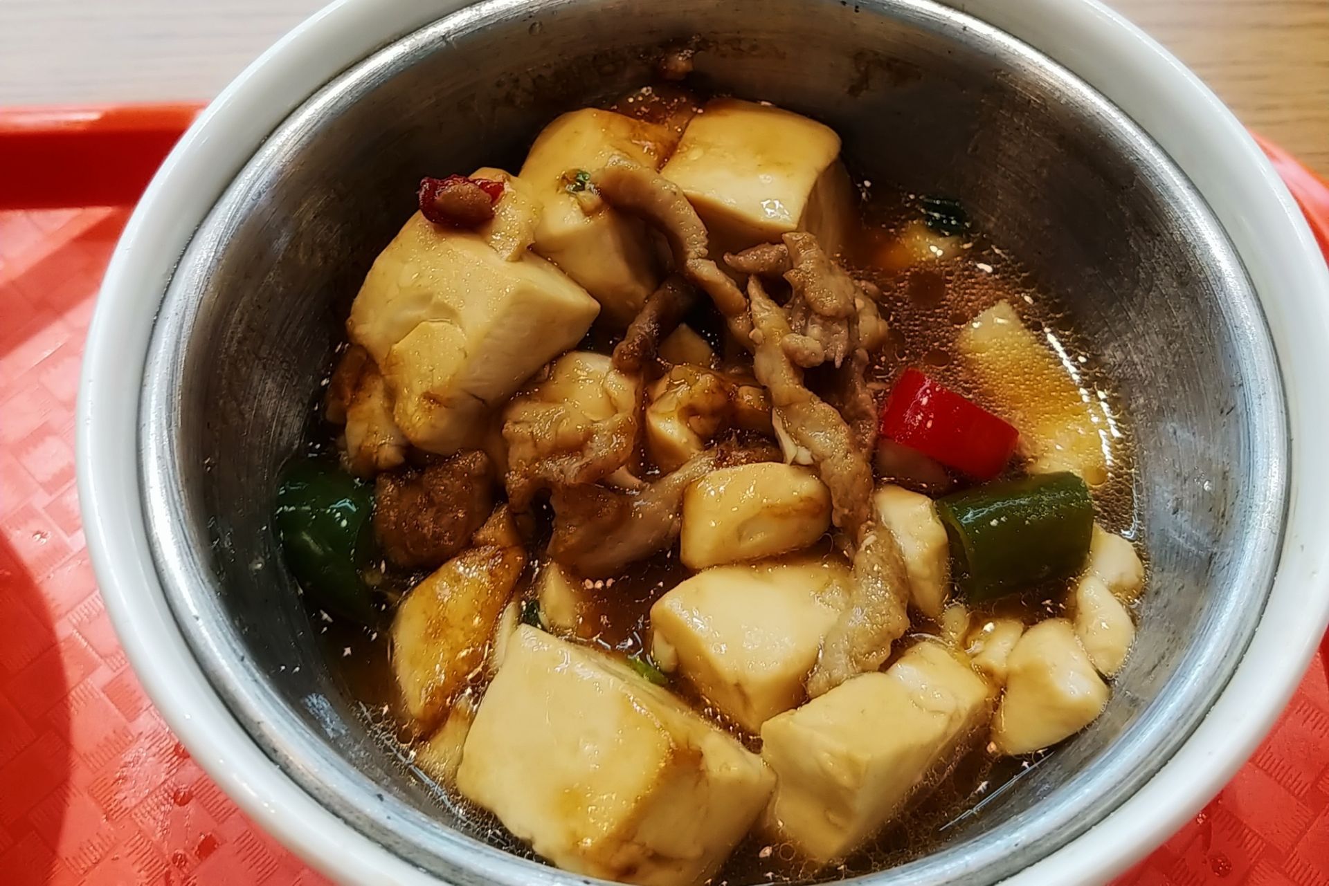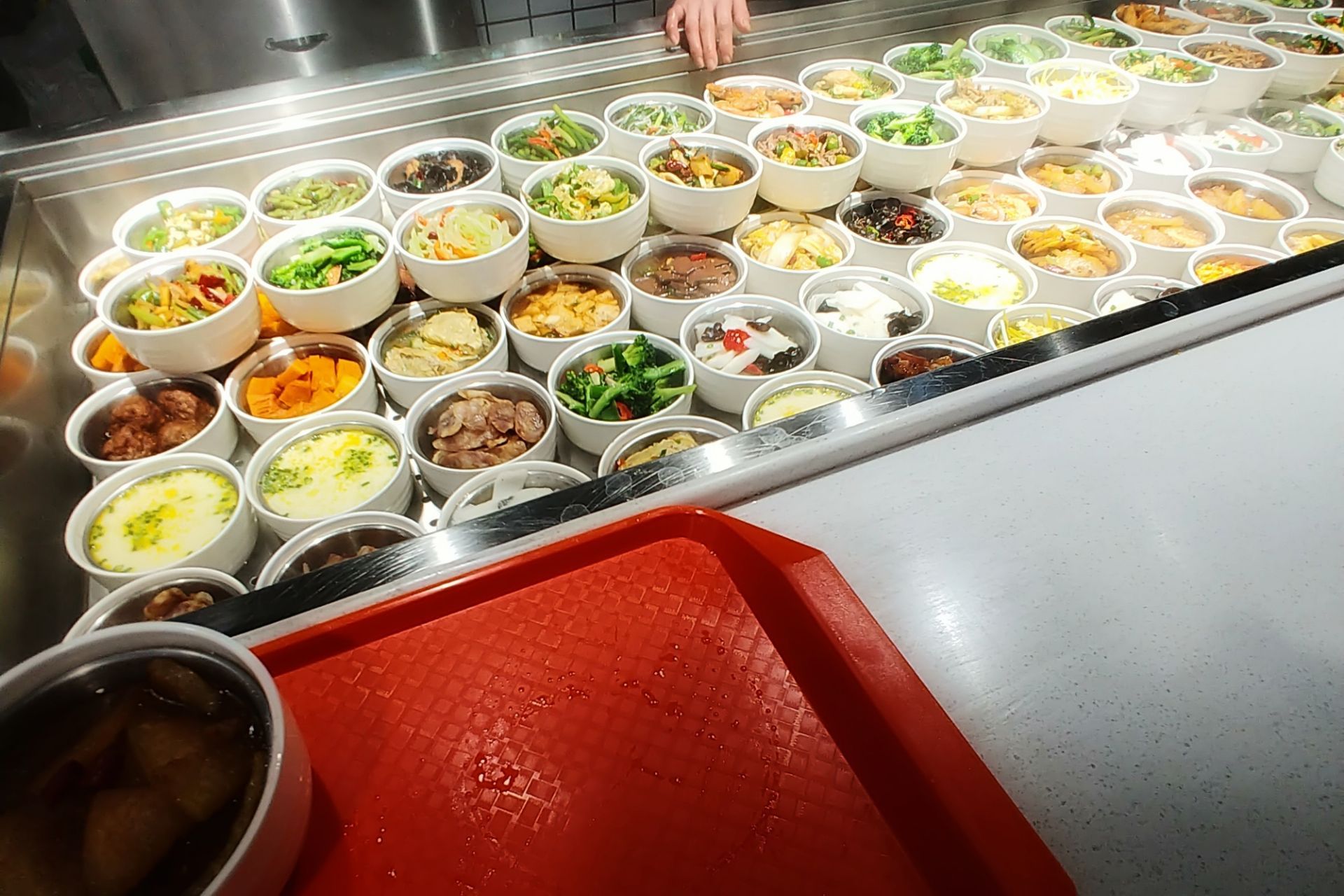 随便吃点什么填肚子就好。 这家的菜都是一份一份蒸好的, 菜色看上去还蛮好看的。 来吃的大都是附近的上班族吧, 有一位穿短袖在吃的小哥特别显眼, 年轻人真是不怕冷呀。 有点小清新布置和快餐属性不是很搭, 突然想起以前这里曾是家小资米线馆。