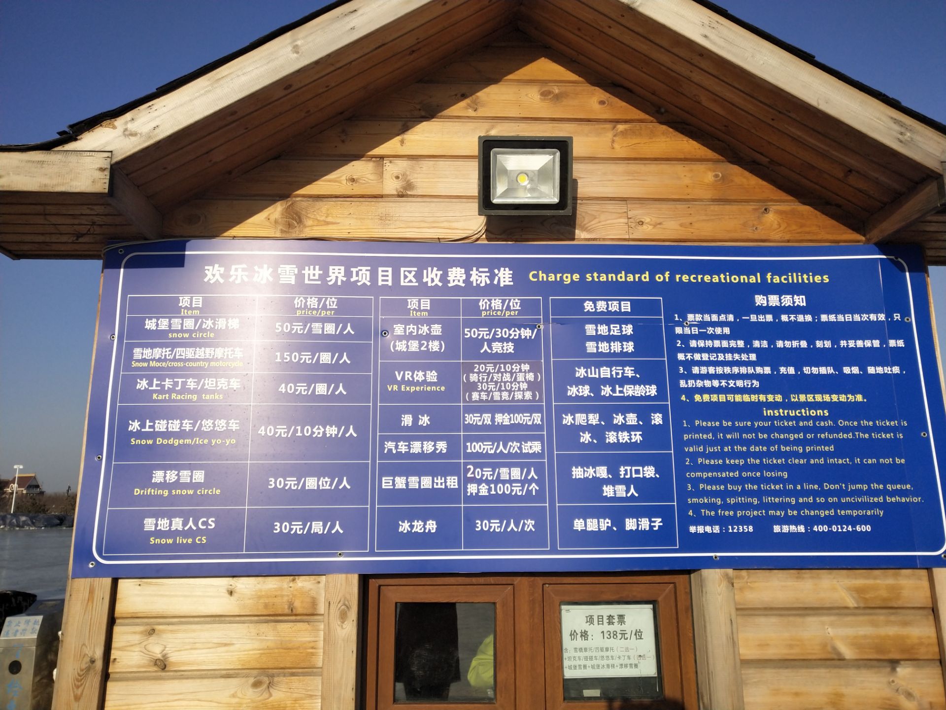 雪莲城堡酒店的院子很大,估计是客流太少了,才会有这么低价的团,免费的游乐项目一个也没看见,收费...随团去的,雪莲城堡酒店的院子很大,估计是客流太少了,才会有这么低价的团,免费的游乐项目一个也没看见,收费的也只有三种,滑雪,滑雪圈和雪地摩托,没等到点灯,转去冰雪大世界了。