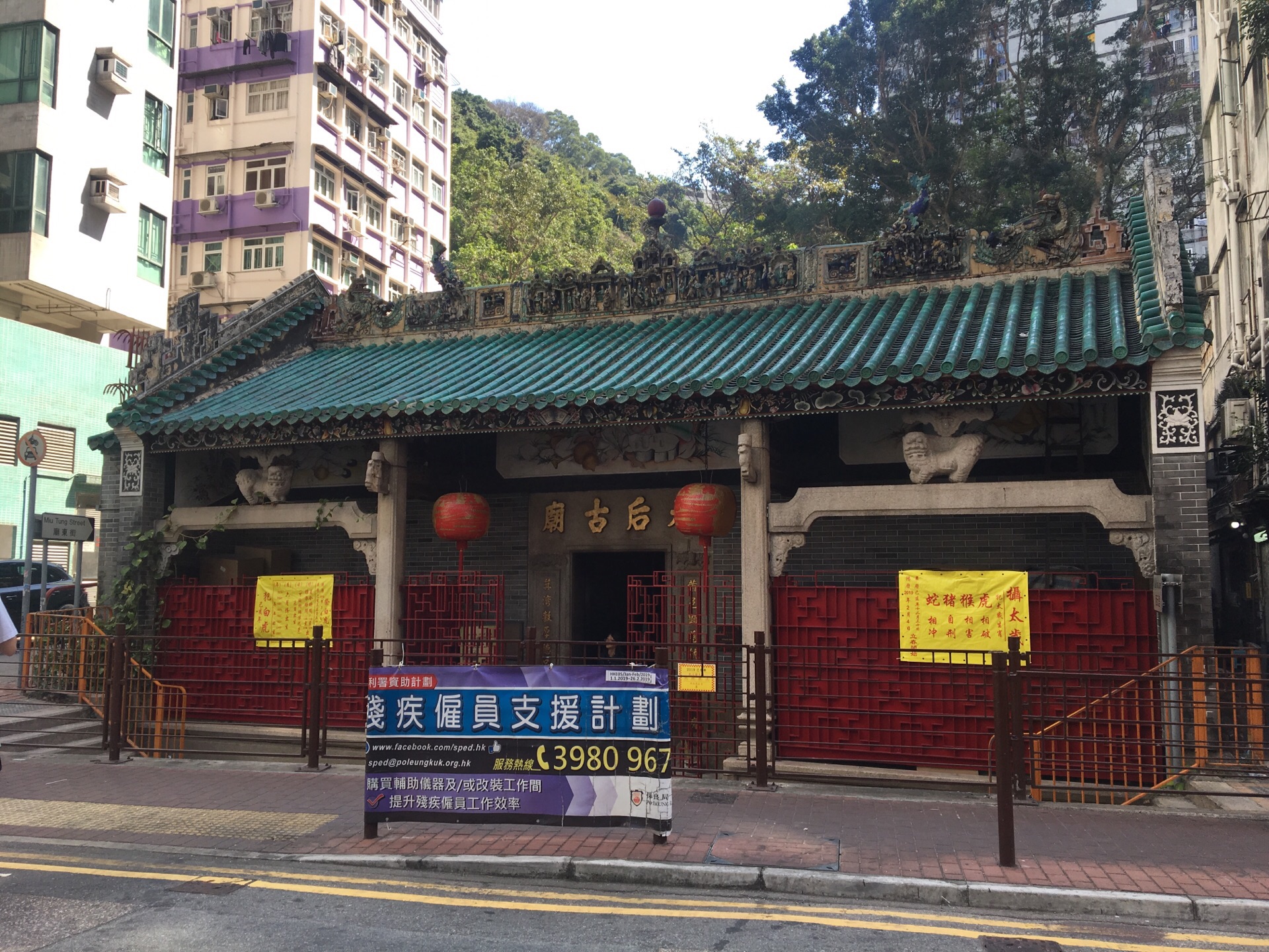 筲箕湾天后庙是一座下沉式的庙宇,整体的地基要低于街道。这是香港的二级历史建筑,建于1874年。是因为在当时香港经历了有史以来最大的台风,伤亡惨重。而恰恰筲箕湾的这片区域受损轻微,所以当地的民众认为是天后娘娘的保佑,因此重建了当时遭到破损的天后庙。从此,这座庙宇香火旺盛。
