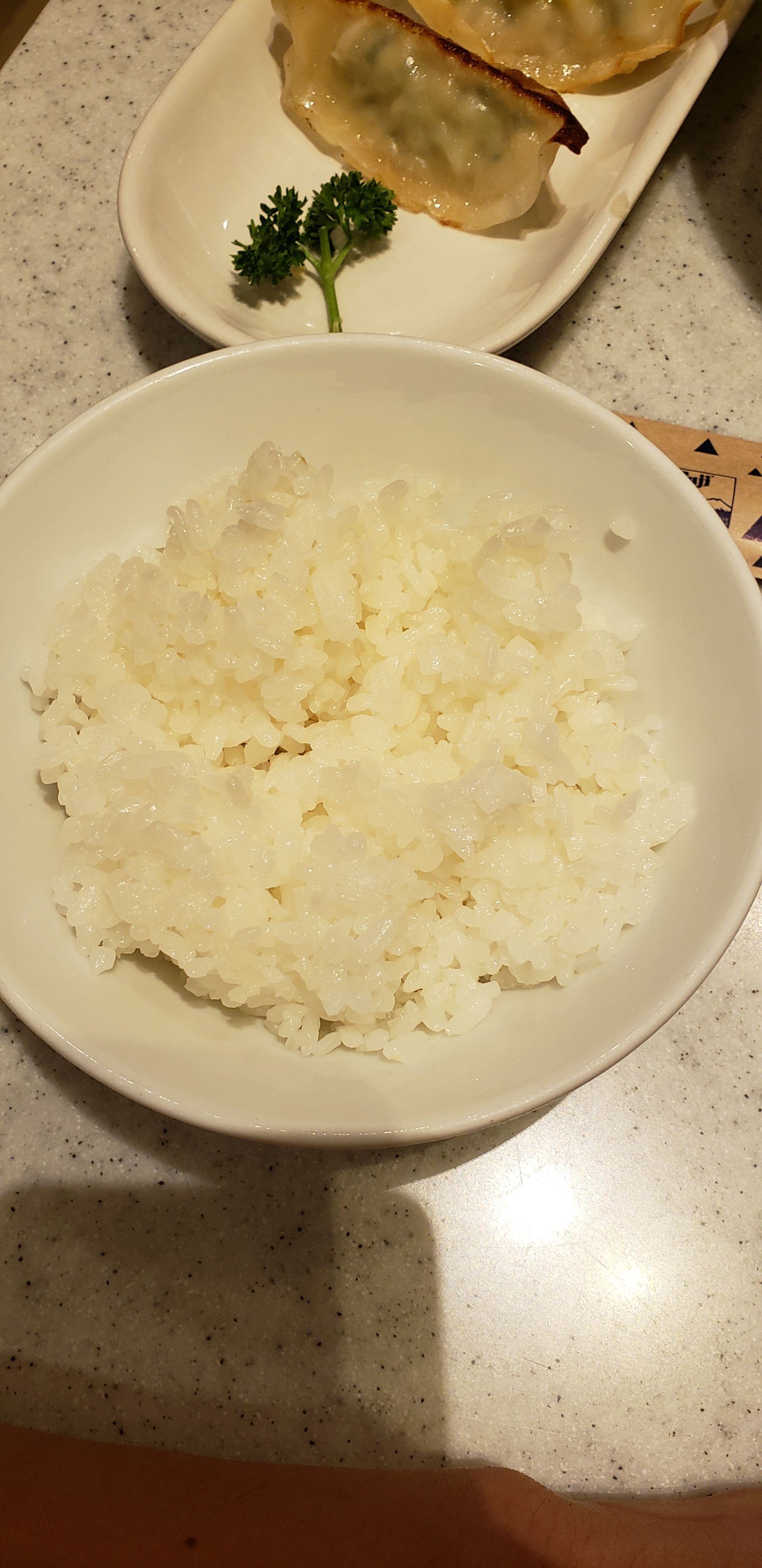 ...餐有一碗饭,一份泡菜,一个炸的豆腐,4个煎饺和一碗酱油拉面,东西基本都是温的,感觉不到新鲜热辣