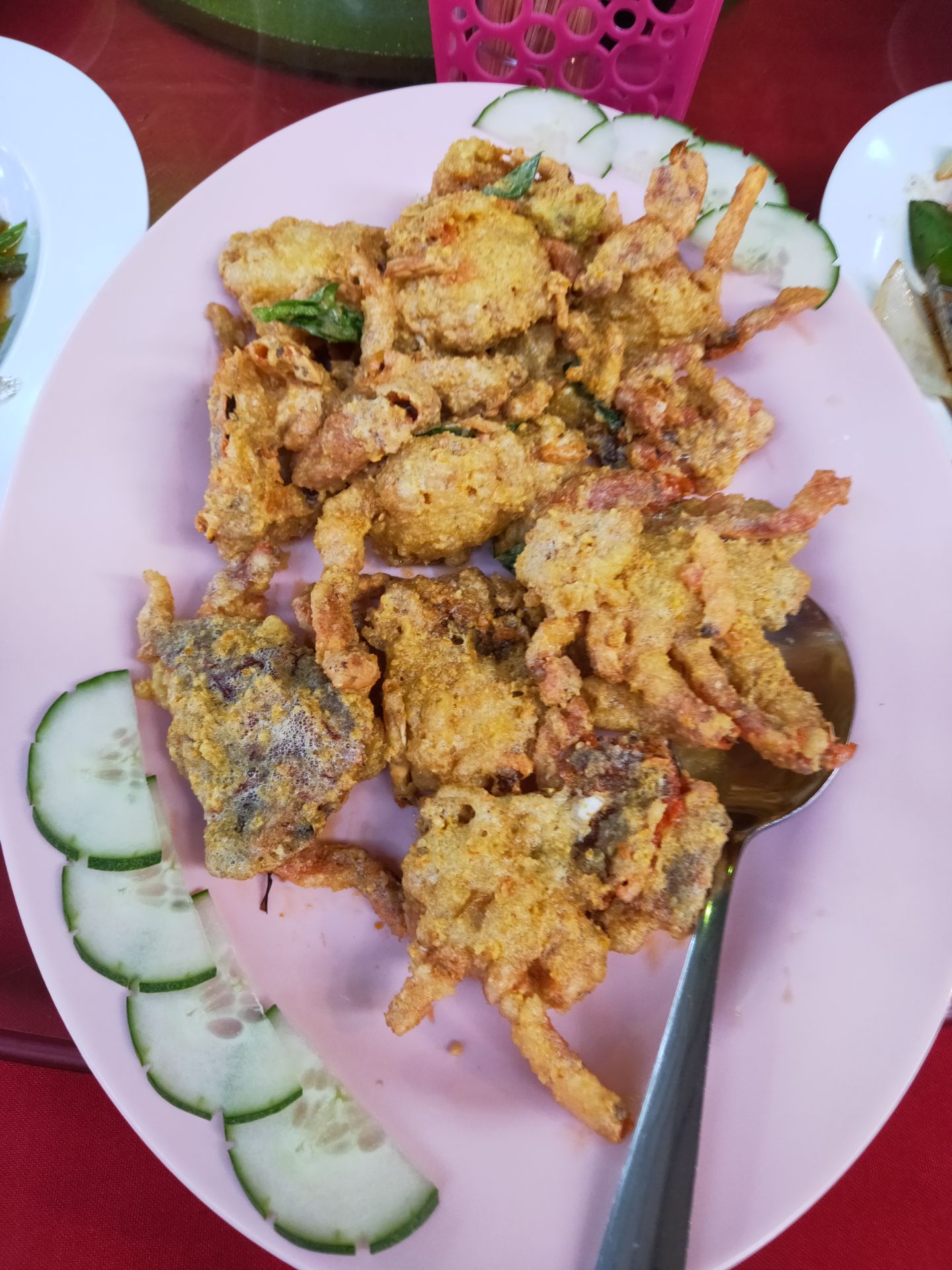 他们家的飞饼好吃,特别是原味的飞饼,另外我们点了咖喱蟹,奶油蛋黄虾也好吃。其他海鲜不要在这种小店吃他们家的飞饼好吃,特别是原味的飞饼,另外我们点了咖喱蟹,奶油蛋黄虾也好吃。其他海鲜不要在这种小店吃。到专门吃海鲜大餐的地方比如海皇星去吃。