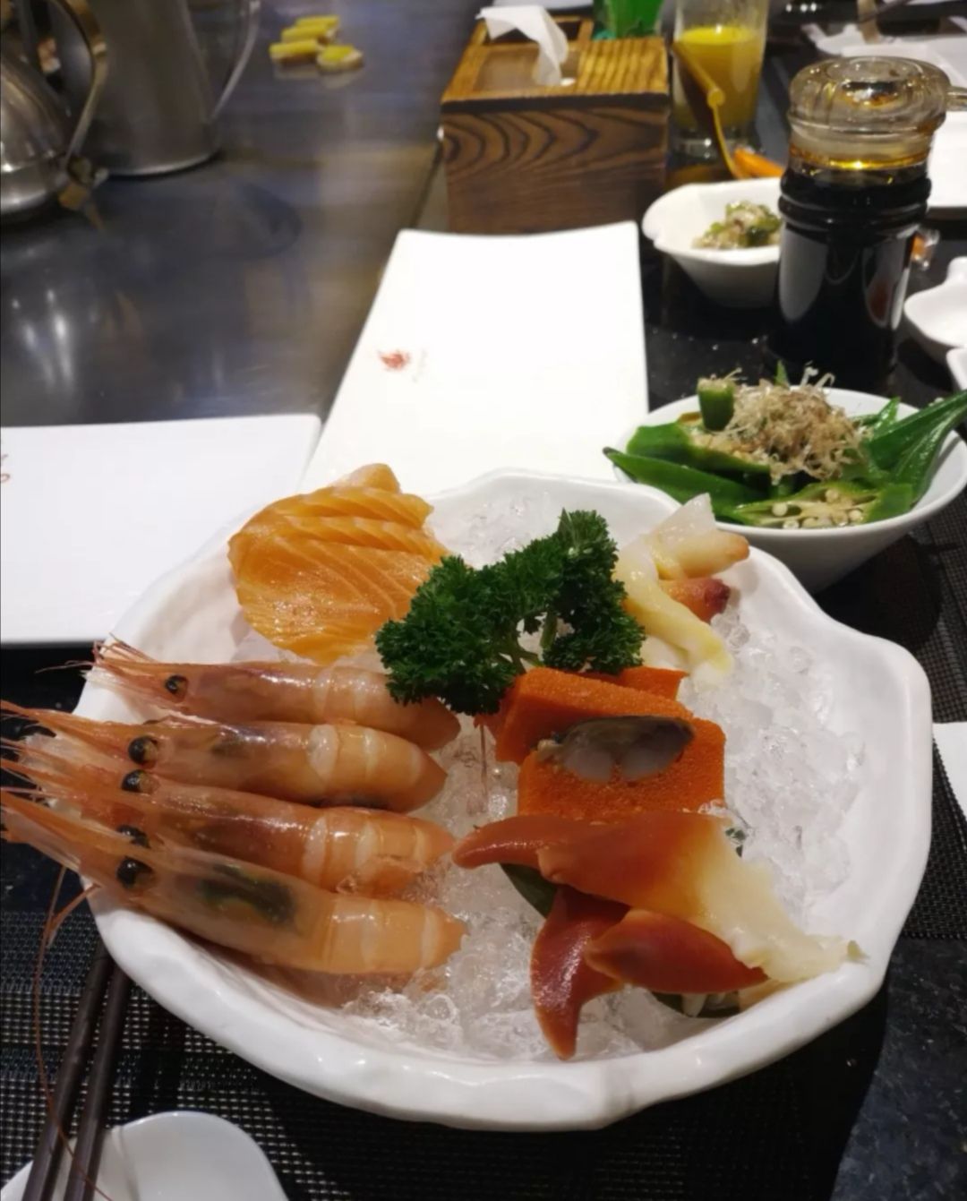 吃的非常饱,最喜欢这里的鹅肝,鹅肝和面包中间配了芒果,酸酸清香,一点也不腻,其次是甜虾,蓝绿色的虾仔可以选自助,吃的非常饱,最喜欢这里的鹅肝,鹅肝和面包中间配了芒果,酸酸清香,一点也不腻,其次是甜虾,蓝绿色的虾仔,满满的,虾肉甜糯,一点也不腥,服务也很好。