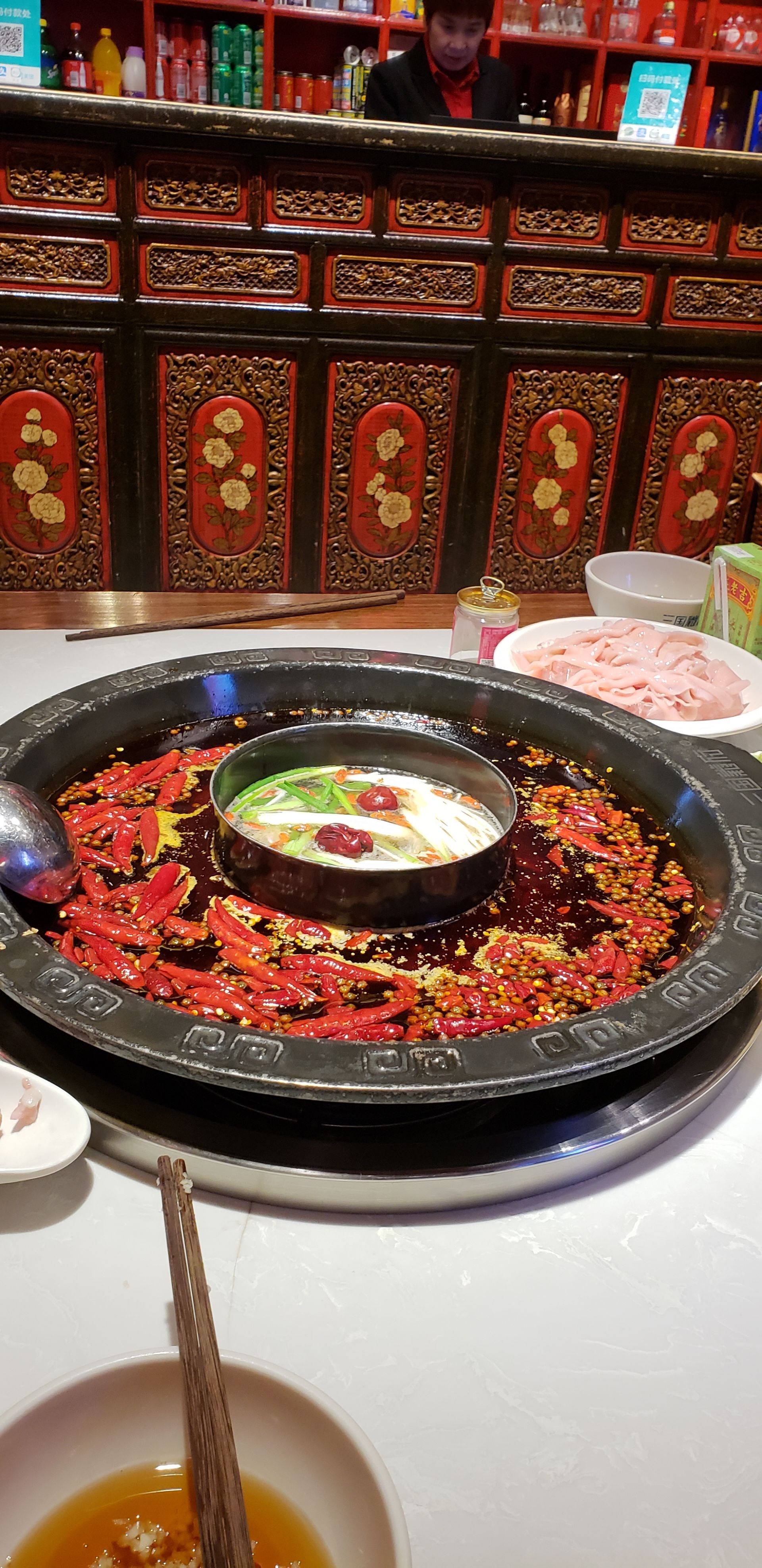 泰国回来,第一件事情就是吃火锅,这家店很大,有一楼和二楼,二楼有表演变脸川剧之类的,晚上六点钟过来,二楼需要排队。于是坐了一楼,服务比较热情,味道这些还可以,菜品份量比较多,但是价格也上去了,附近停车不方便,找了个停车场,停了一个多小时15元有点贵。