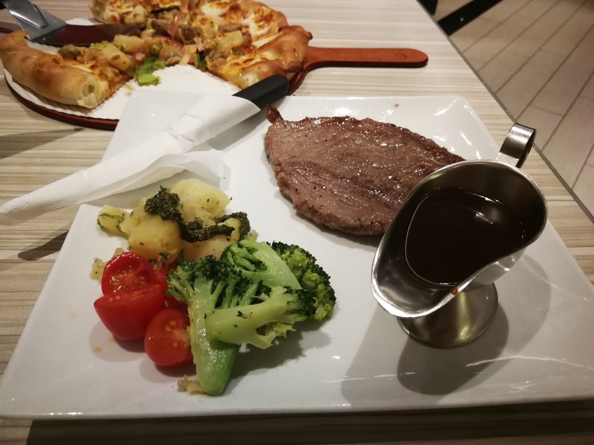 宝山城区必胜客有三家,宝钢店地理位置还是可以的,在友谊路牡丹江路路口,下雨天人也不少,来必胜客披萨和牛排是我必点的,鸡翅味道也不错,就是今天的色拉点差了,感觉没有土豆色拉好吃,总之感觉不错,人均消费在120左右