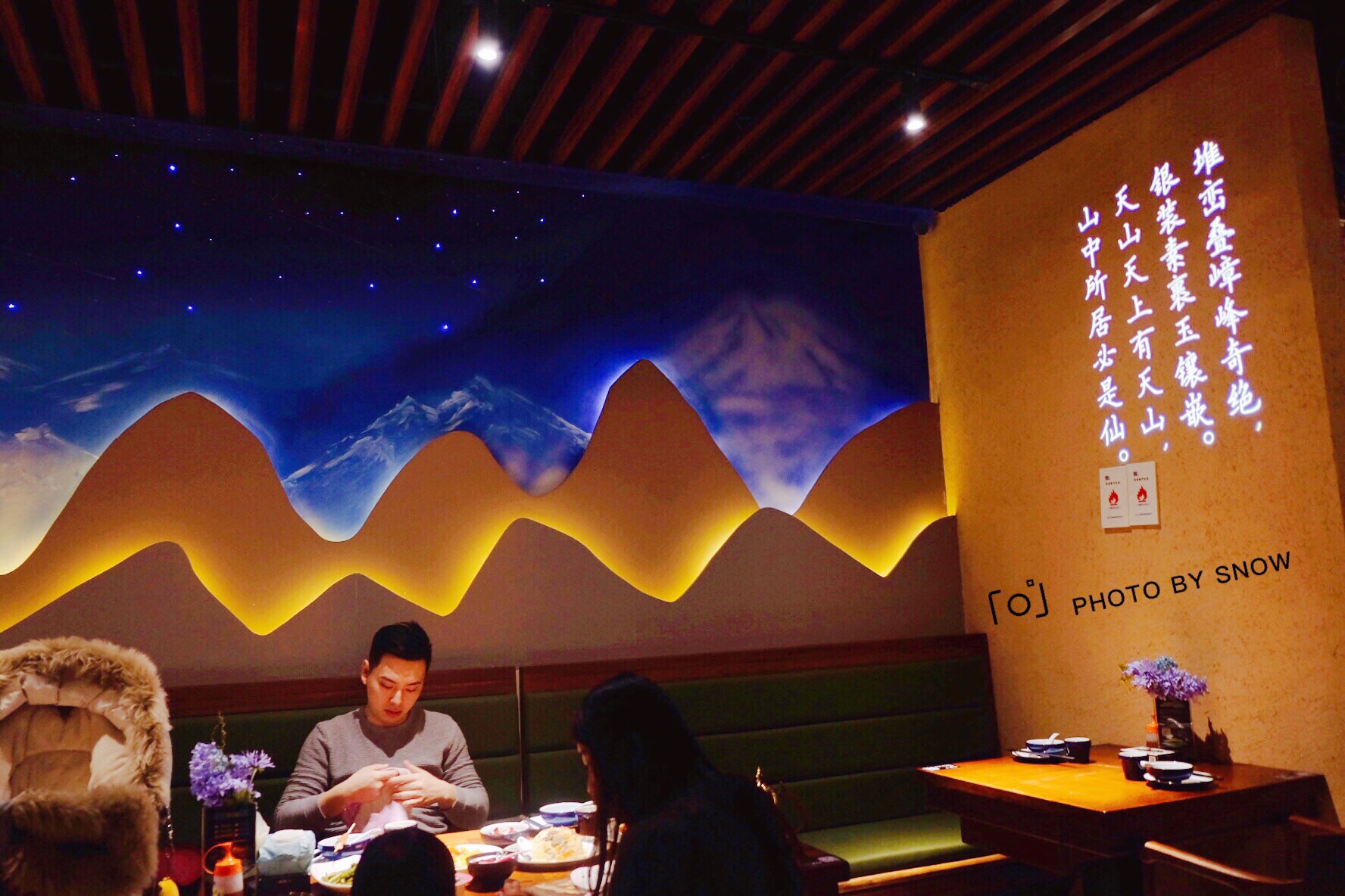 -----❤2019我与美食有个约会❤----- 个人推荐指数分: ๑踩雷不推荐... ๑随便吃吃啦... ๑还不错值得试... ๑炒鸡好吃别错过... ♪晓疆山 :个人推荐指数:还不错值得试 新开业的白玉兰广场入驻了这家晓疆山新疆餐厅,位于b2喷泉旁,人气不低,落座将近客满 天山天上有天山,山中所居必是仙! 餐厅环境打造的颇具特色,像在浩瀚的沙漠里,抬头就是无尽星空 餐前附送了一盘小红枣和葡萄干,花茶标配,服务态度有点不上心,不过基本还能做到有求必应 ♥️疆山羊肉串:5米。 价格不贵,味道不错,油脂刚好,不会觉得柴,也不会肥腻 ♥️大汗烤羊排:25米一根。 羊排撒上孜然粉,喷香扑鼻,拿起来还在滴油,嚼起来带劲,但感觉肥肉部分过多了,大口吃肉在新疆餐厅都能满足 ♥️娜帕里勇:8米一块,3块起点。 最爱的甜品,新疆拿破仑,奶香味浓,一口气夯掉三块 ♥️古法蒸鸡:52米。 一直对大盘鸡爱不起来,于是别出心裁点了蒸鸡,没想到倒是出乎意料的好吃,皮光肉滑,肉嫩多汁,汤汁鲜美得不得了,只不过咸了点,加以调整会更完美