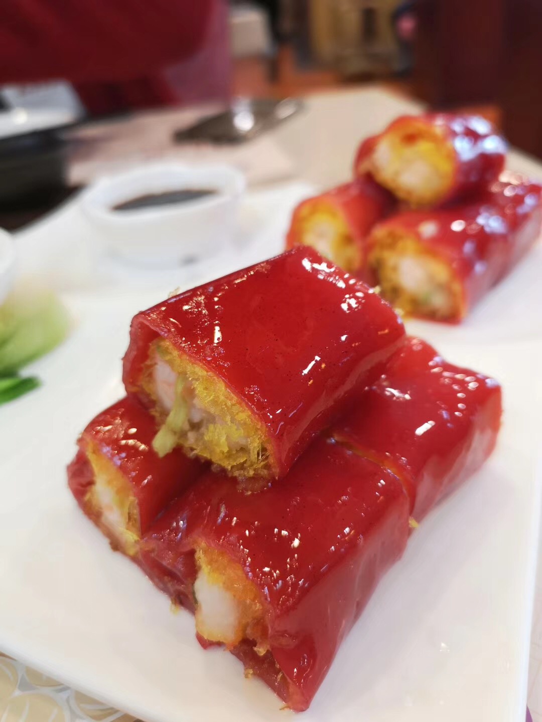 吃忒饱了,满足、开心,红米肠,里面有个大虾,味道不错哦