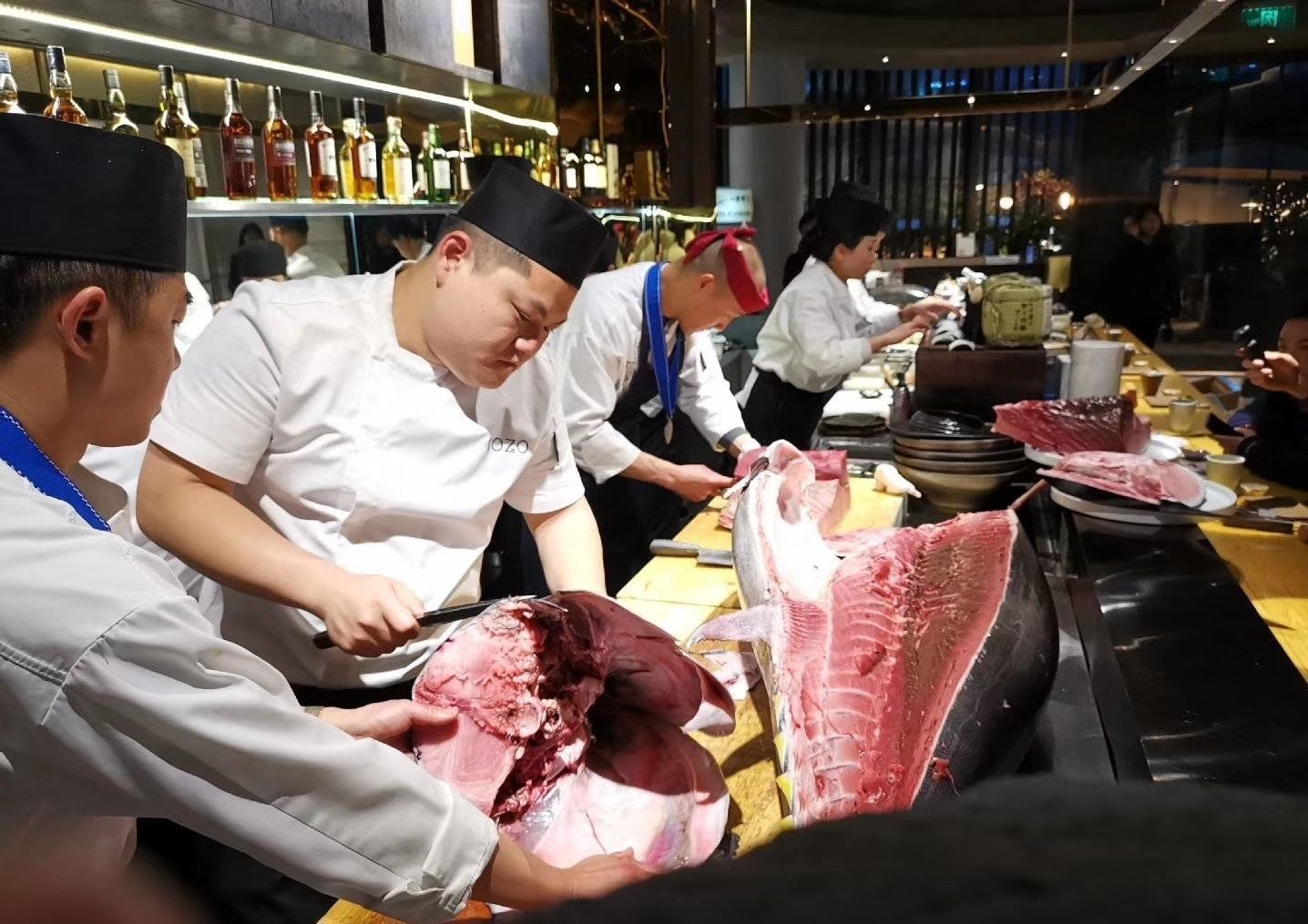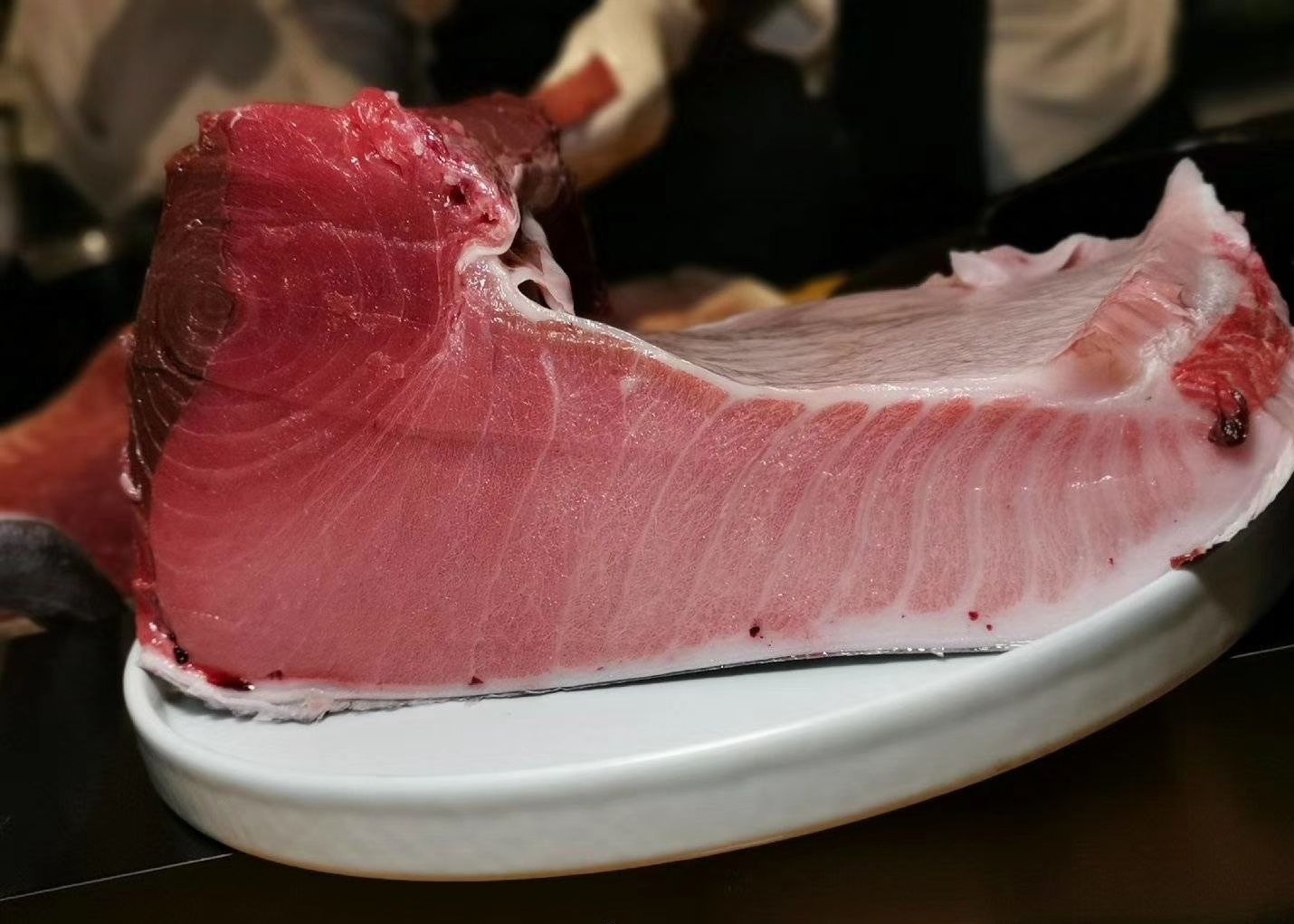 现场开一条近百斤的蓝鳍金枪鱼,尝了几个部位,口感真好。大隐手作,成都天府三街地铁口附近大隐手作,成都天府三街地铁口附近。这家开业时就吃过,品质不错,今天放弃了高楼吃美食赏烟花,专程过来和新老朋友品美食,欢度元宵节。现场开一条近百斤的蓝鳍金枪鱼,尝了几个部位,口感真好