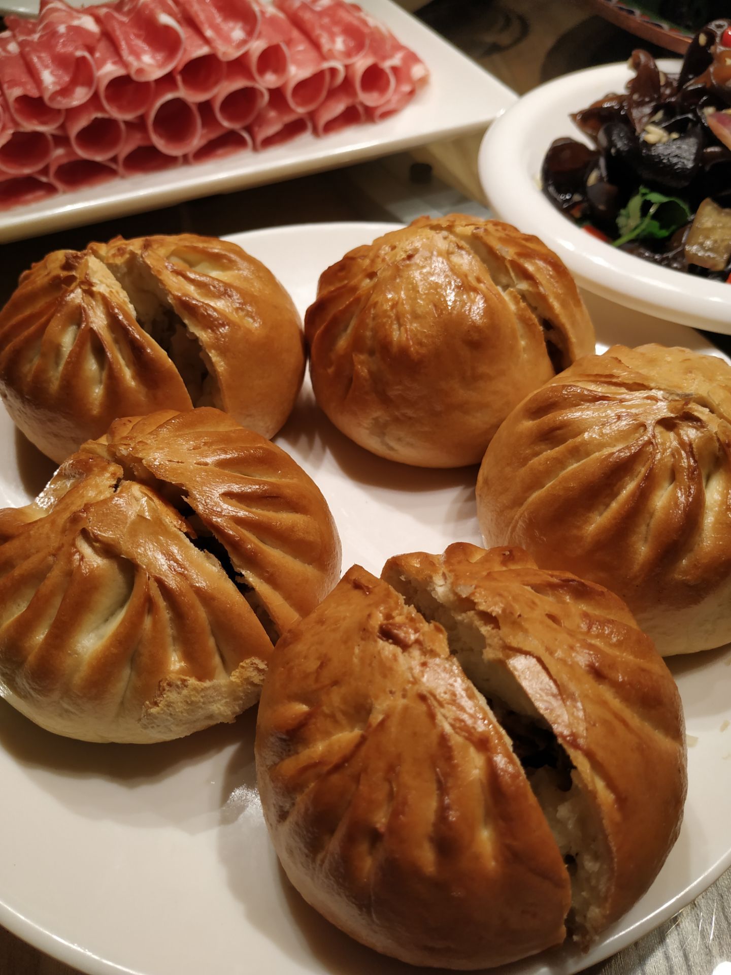 包子外皮金黄,食欲感超强,且口感丰富。 #涮羊肉# 涮羊肉首选额尔敦,想必也深受广大食客认可
