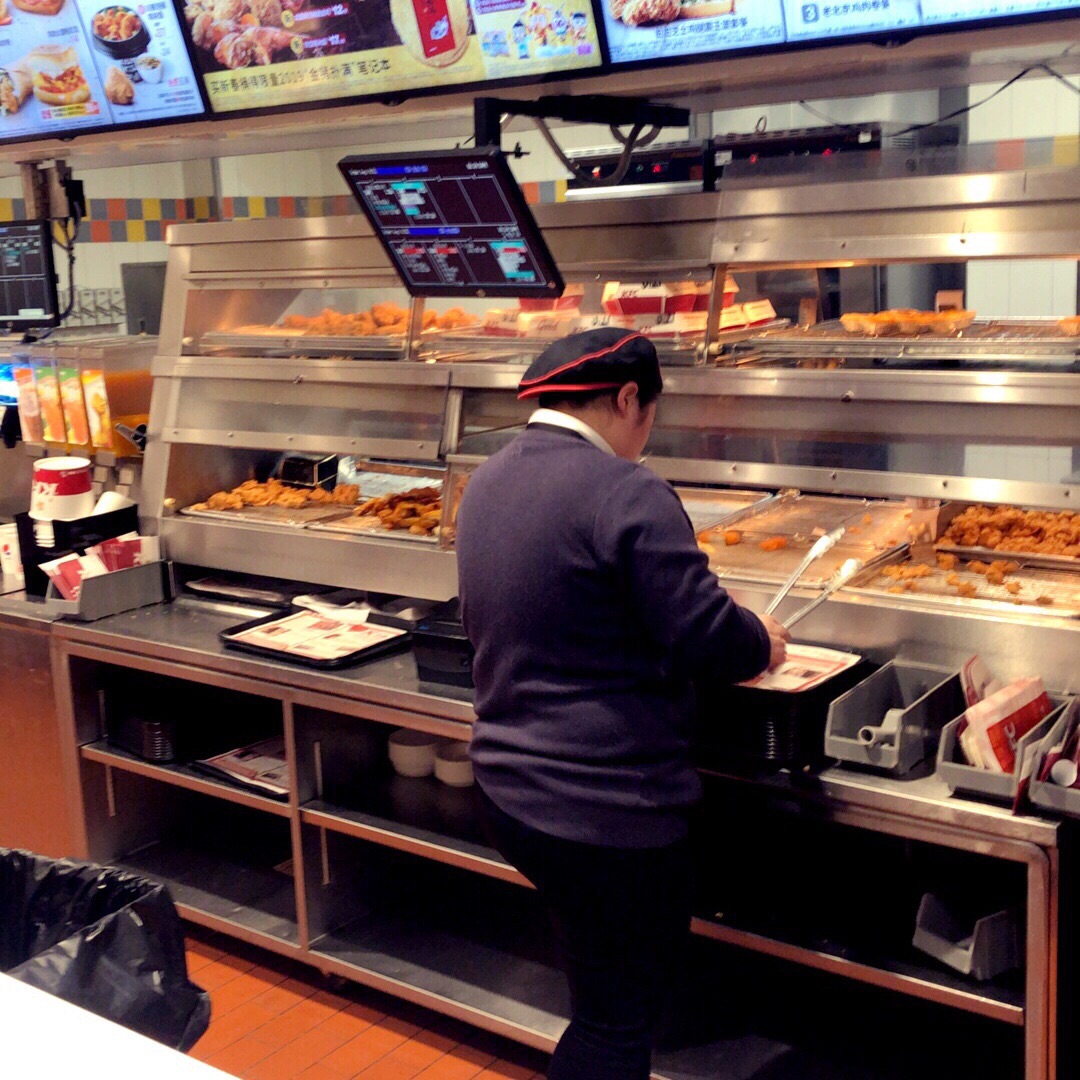 肯德基在萧山国际机场居然有如此大的门面!而且机场有两家肯德基,这家是大又宽广的,有三个门面,位置在T2航站楼的到达厅靠近T3航站楼的位置。里面有许多供顾客休息的桌椅,不过由于在一楼,所以略显暗些。店内顾客偏少,不知是否与位置较偏而且在到达厅有关,一般来说旅客抵达大多是直接坐车离开的,所以光门面大也不行,要讲究位置才行!