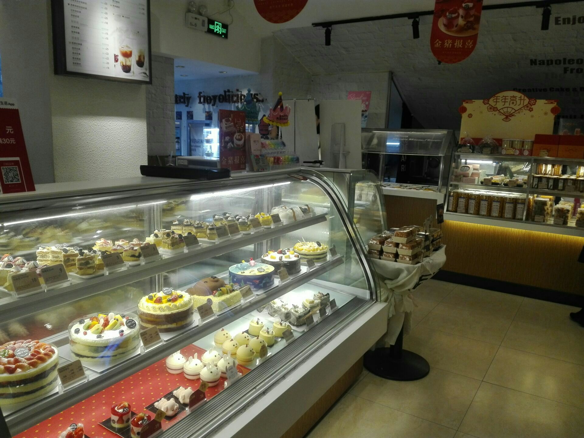 这家“喜乳酪”跟“面包新语”连为一体,应该是同一家老板吧,他们主要出品是蛋糕、雪糕,还有若干点心、小饼,跟“面包新语”的主打“面包、小点”有一定差异,蛋糕品类也比“面包新语”的多一些,所以最终在这里订了一个“榴芒双拼”生日蛋糕,味道不错,真材实料,得到大家的一致好评!