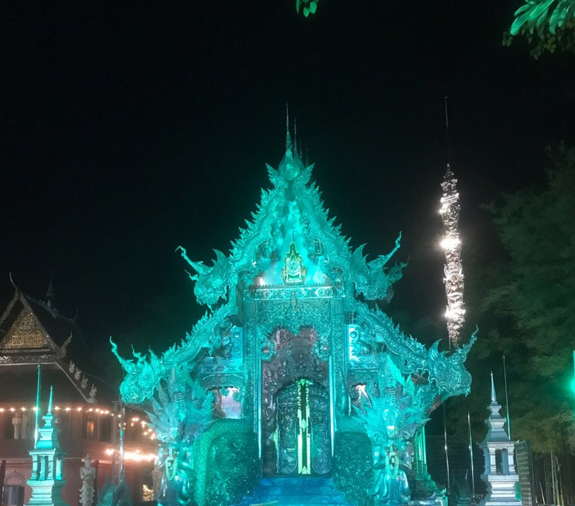 寺庙大门的墙上有巨型和极长的纳迦,在泰国寺庙里面很少见的圣方寺是相当古老的寺庙,可以追溯到14世纪,但现在的建筑是缅甸人在19世纪建造的,当时他们占领了清迈。寺庙大门的墙上有巨型和极长的纳迦,在泰国寺庙里面很少见的。