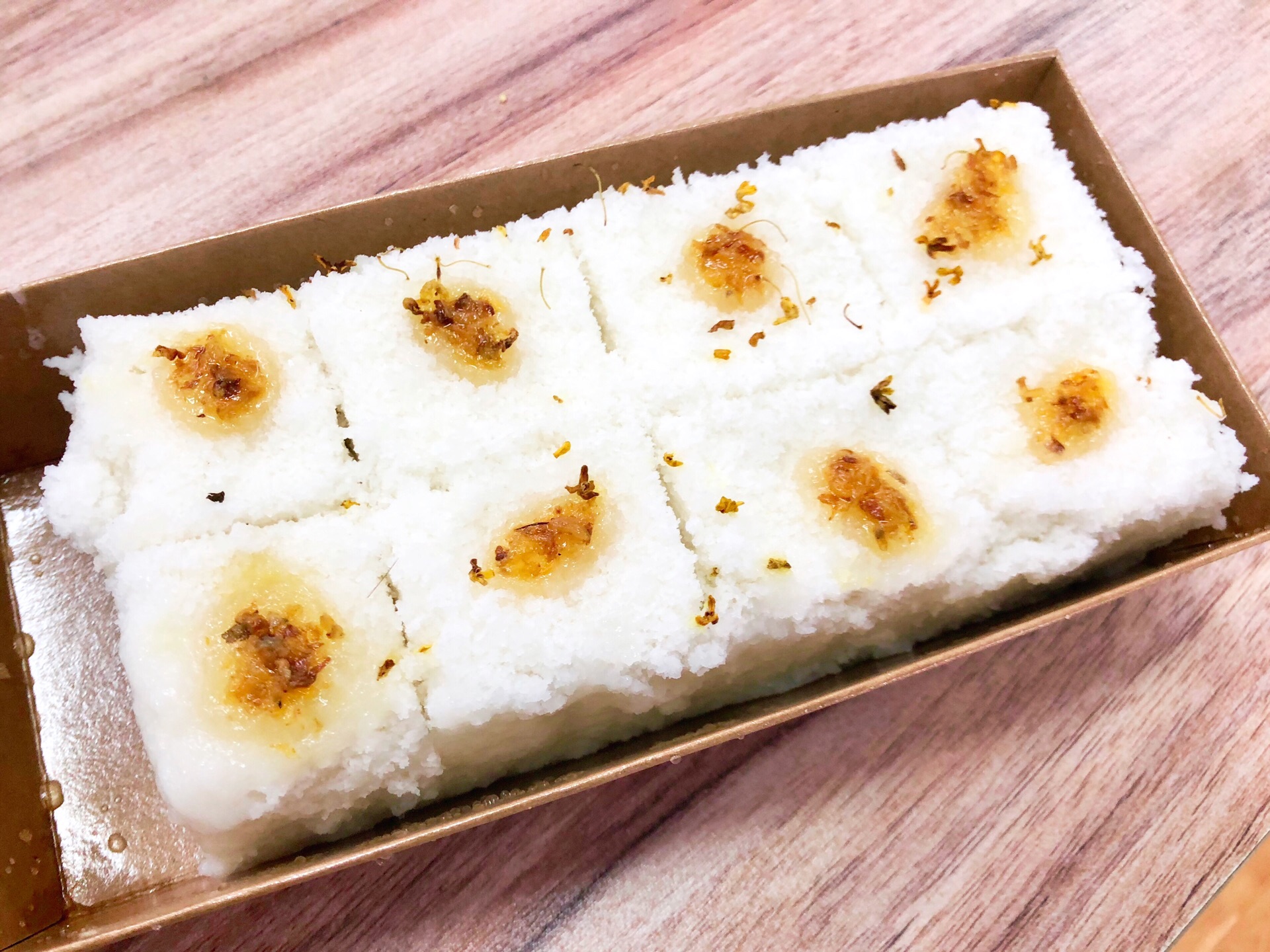网红南大门米糕终于吃到了!谢谢老大! 大清早同事来办公室说给我们带了南大门米糕,兴奋的呀!虽然我刚喝了防弹咖啡,但也抵挡不住优惠~ 桂花糕在微波炉里加热30秒,里面还是有点硬,再加热一会儿一定很好吃!甜而不腻,就是没吃出桂花糕的味道…
