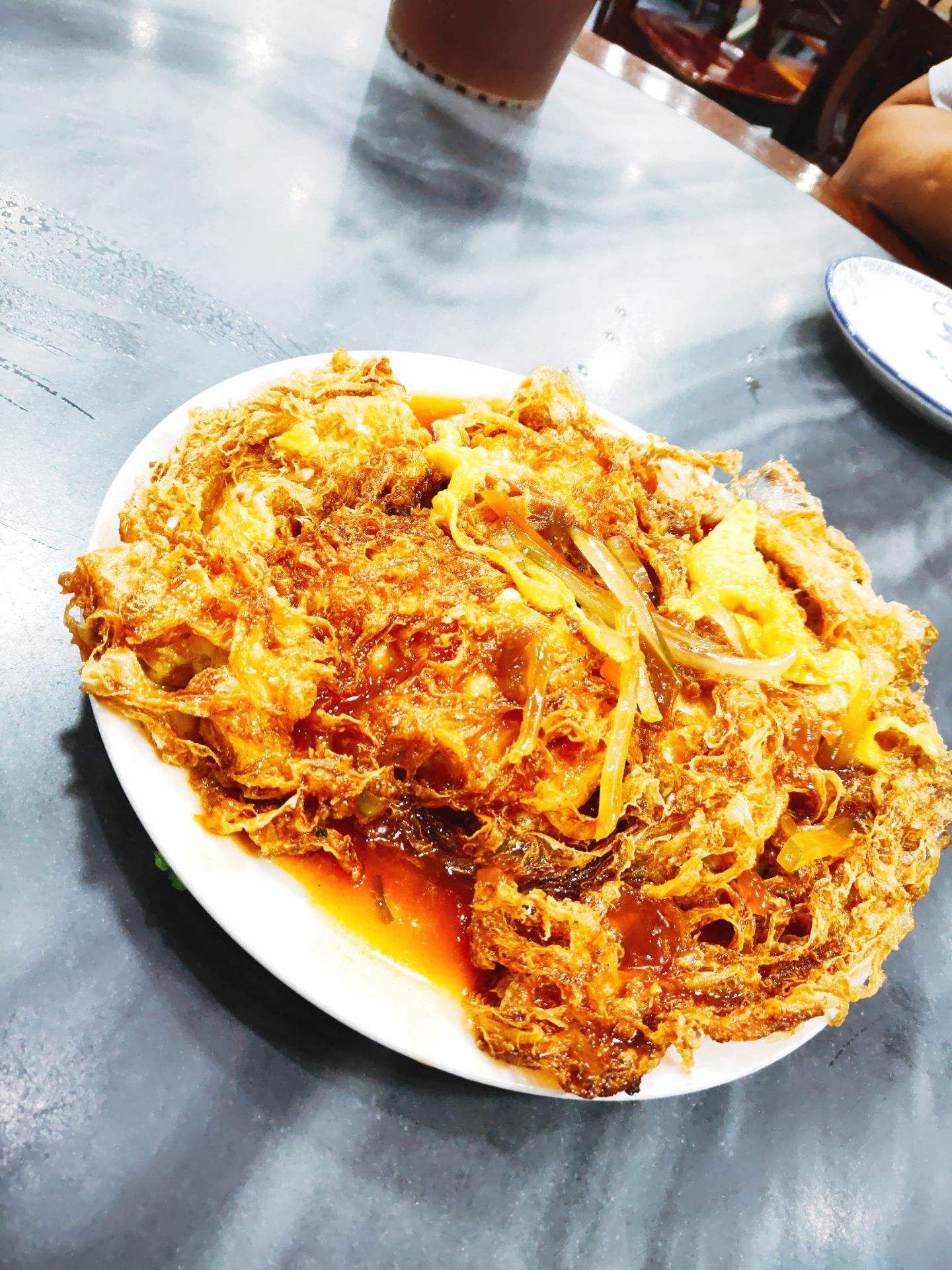 去的总店位置不算好找 人很多 我们自驾 要拐好几个小胡同 三个人 点了两个煲仔饭 一个是黄鳝的 一个原味腊肉腊肠(60元加肉的 米饭都是一样多) 一个五柳煎蛋 一个鱼饼 总体煲仔饭还是不错的 很入味 有硬硬的锅巴 算是不枉费特意去找 图片拍到店里电话