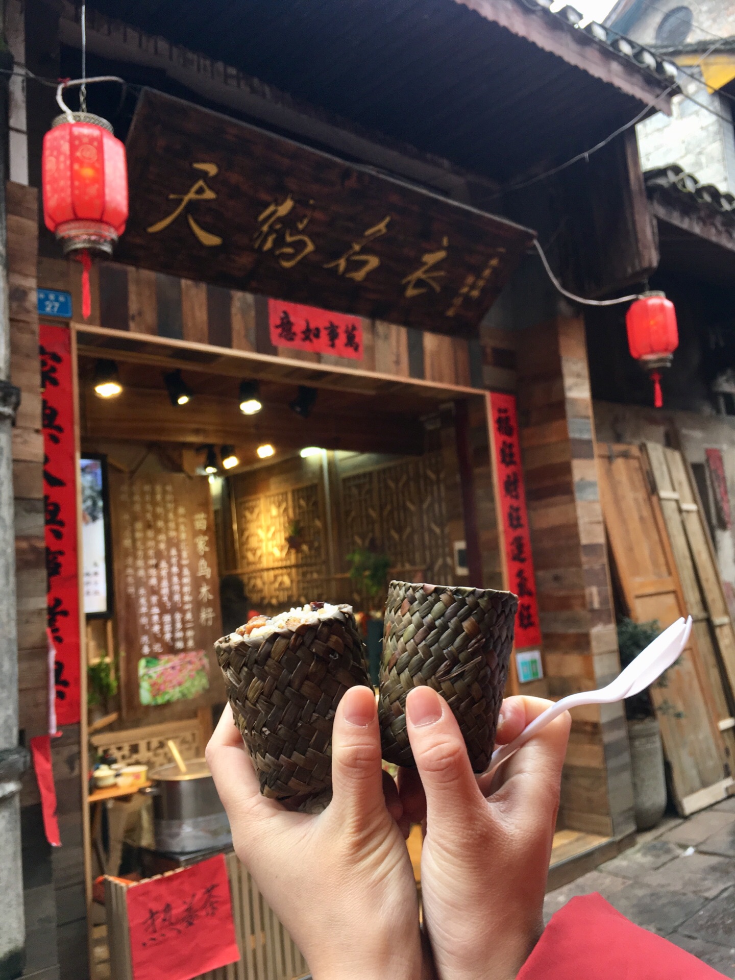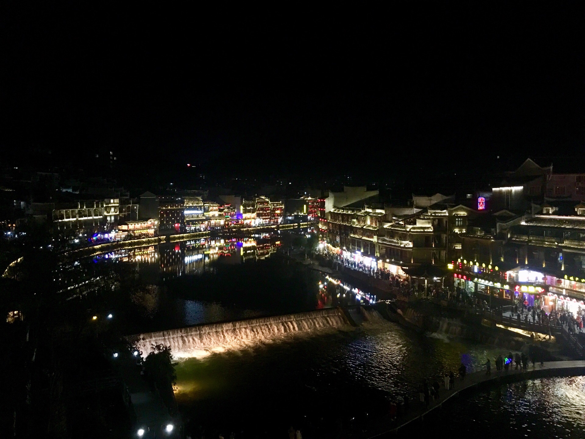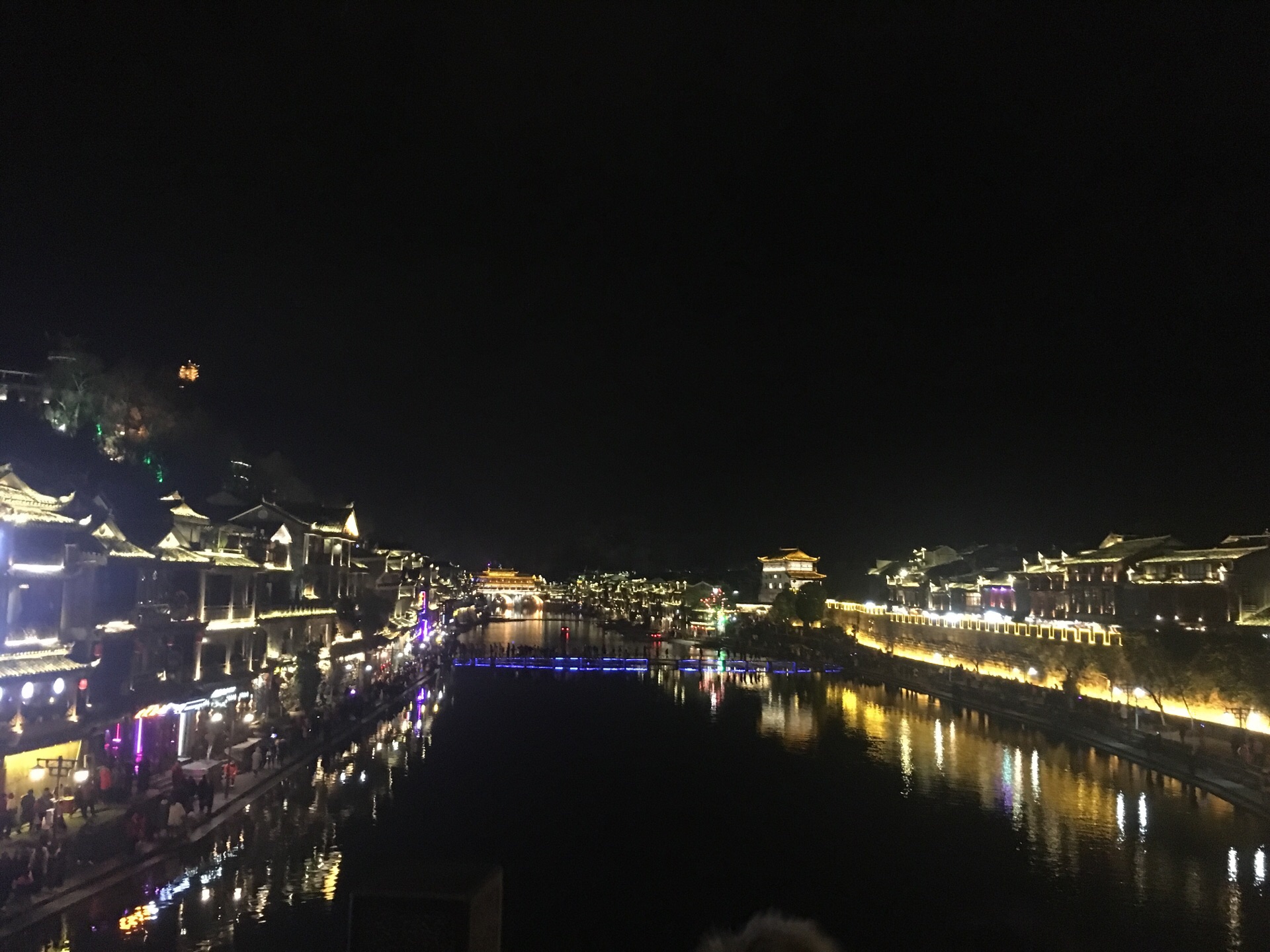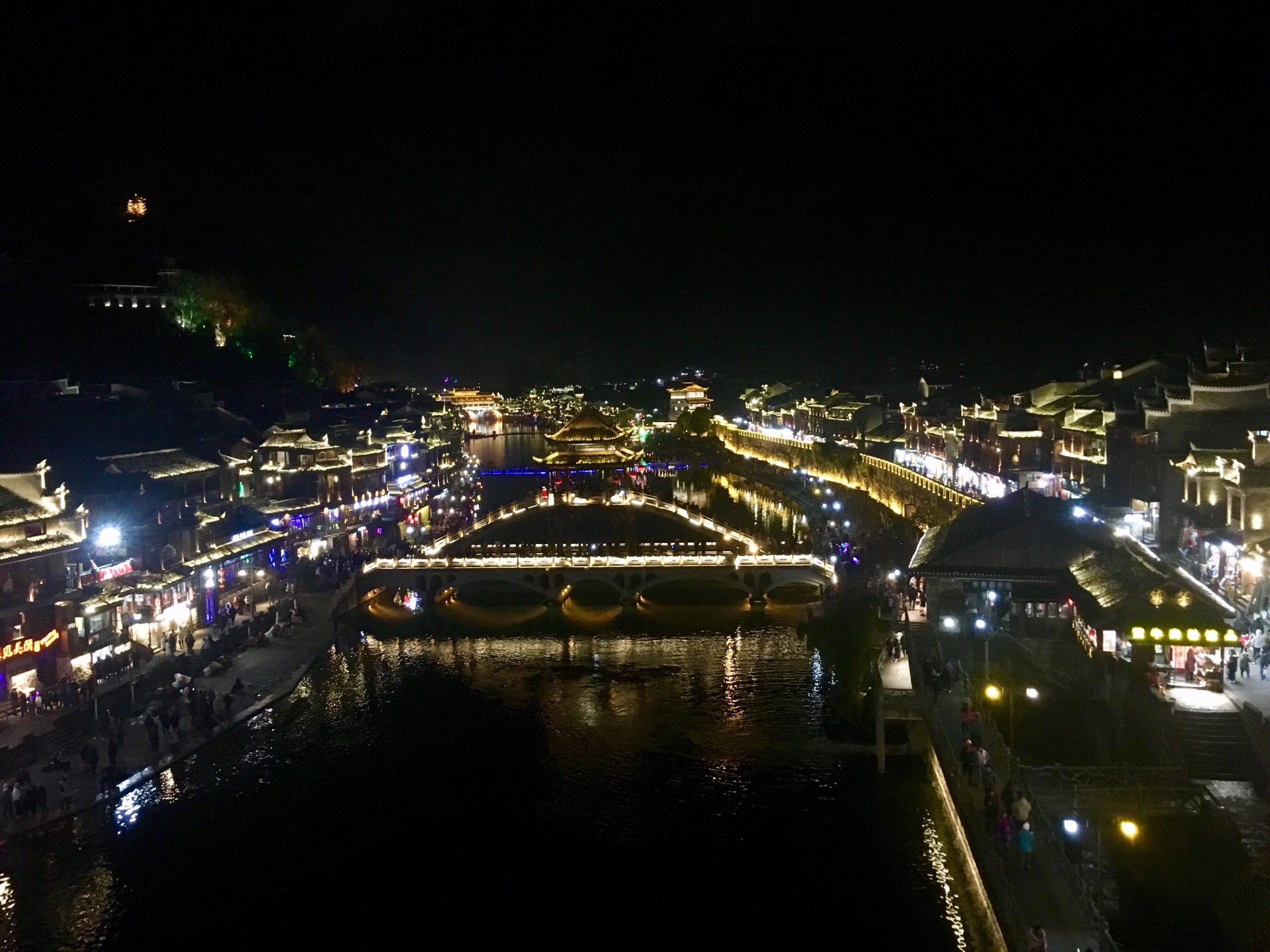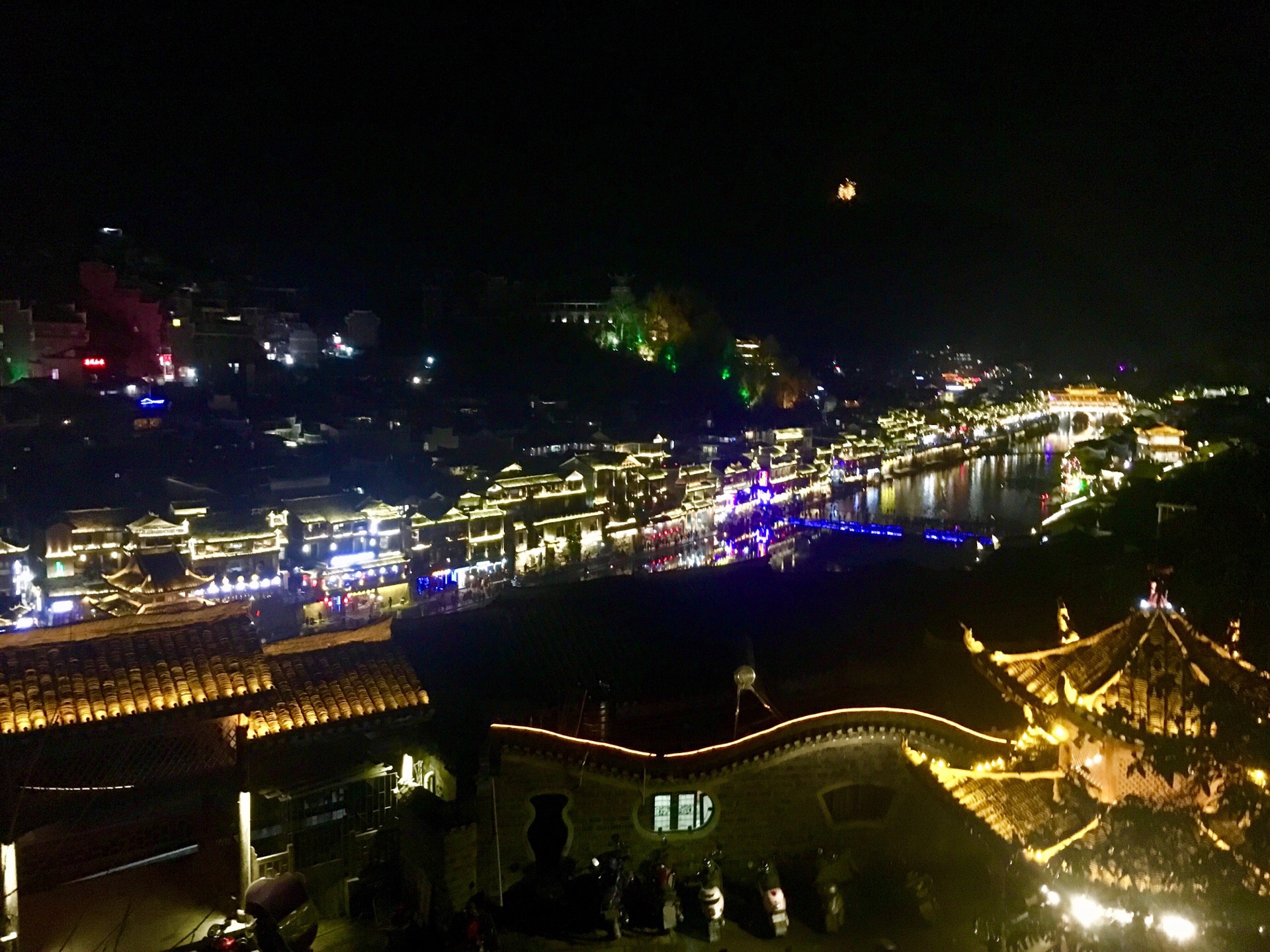 凤凰古城真的超美的,随便拍都好看。建议大家住在景区里面,方便游玩,因为凤凰古城真的超级大。住的话沱江的下游可能会便宜点,因为那里可能比较远,人没那么多。 我们当时从上游一直走到下游,穿大街过小巷,每一座桥都去了。凤凰城区里面也是有很多卖吃的用的,要是大家要买特产的话那些吃的是全部可以试吃的,而且还能讲价,五块钱一包的姜糖最后变五块两包了。我比较喜欢吃九妹粉面馆的牛杂粉,跟我们广东的不一样,还有米豆腐也是湘西的特产,都不错的。 我们走到沈从文故居那边买了两个香茅社饭,一个咸的一个甜的,都好吃。 这里的夜景真的非常美,我喜欢那种一览纵山小的感觉,南华门旁边的小山可以看到一大片的凤凰古城,第一张照片就是在山上拍的。
