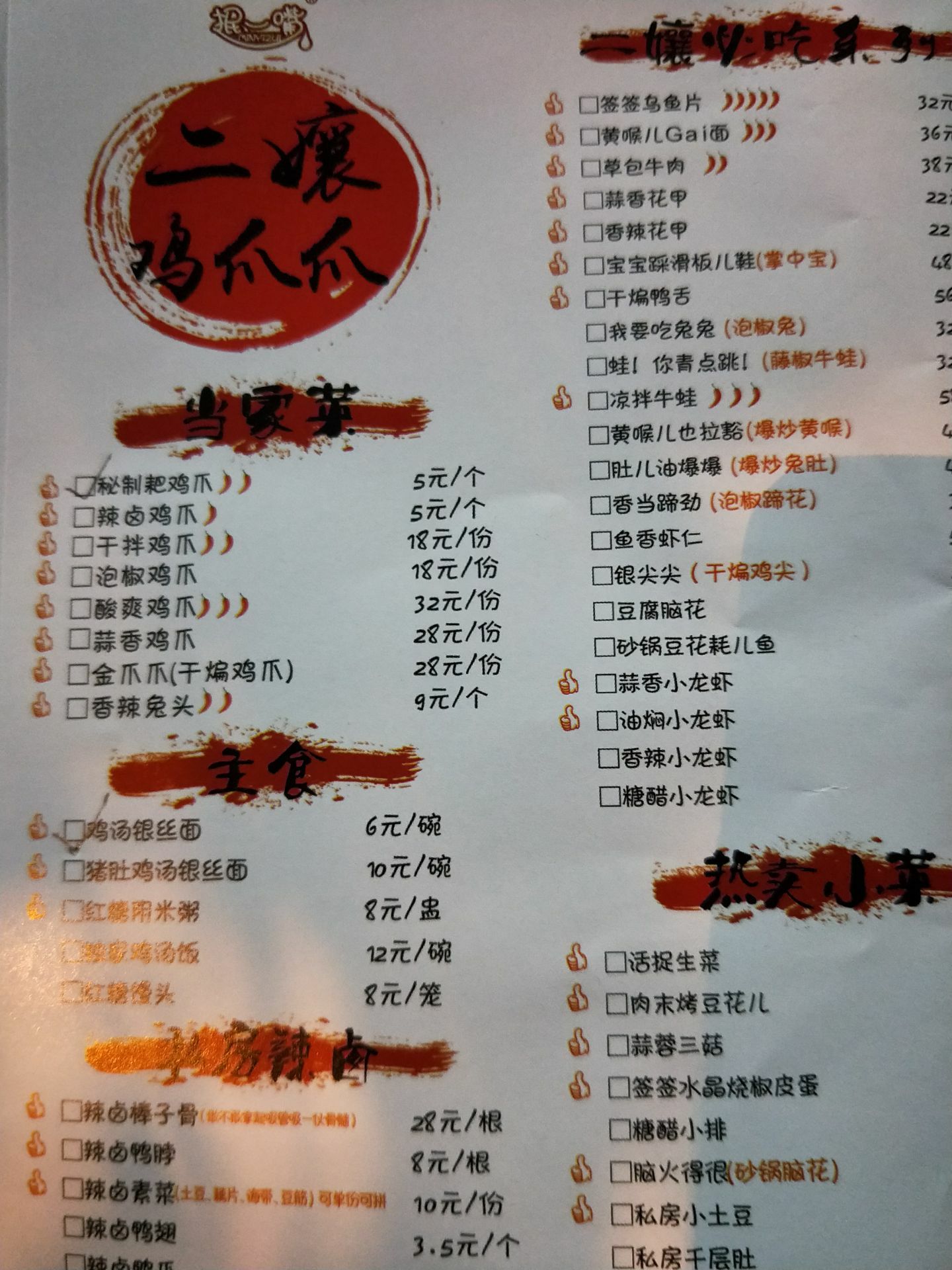这家店位于成都奎星楼街,旁边就是游客如织的宽窄巷子,这里可以说是成都网红美食一条街了,也是成都本地人常来的小吃街。 二孃鸡爪爪在成都分布有不少家,奎星楼这家店生意算最火爆的其中一家了,本人去吃了两次都排了很长时间队才吃上!不过为了能吃上美味,就算排队等候也值得! 最推荐的招牌当然是秘制鸡爪爪了,逢来必点,5元一个,鸡爪很软,非常入味,入口即化,和降龙爪爪一样是我最爱吃的鸡爪没错了! 鸡汤银丝面味道也是非常的棒,是用鸡汤熬的,面条很细,清香味美,吃起面来和喝起汤来到胃里会有种暖暖的滋润心田的感觉,价格也就6元一碗很实惠了。 如果一个人来点餐的话,点个招牌鸡爪和一碗鸡汤银丝面,感觉就可以吃饱了。朋友几个人聚餐的话也可以多点些菜品或者鸡爪。 总之,成都美食众多,二孃鸡爪爪(奎星楼店)店还是很值得去细细品尝感受的!