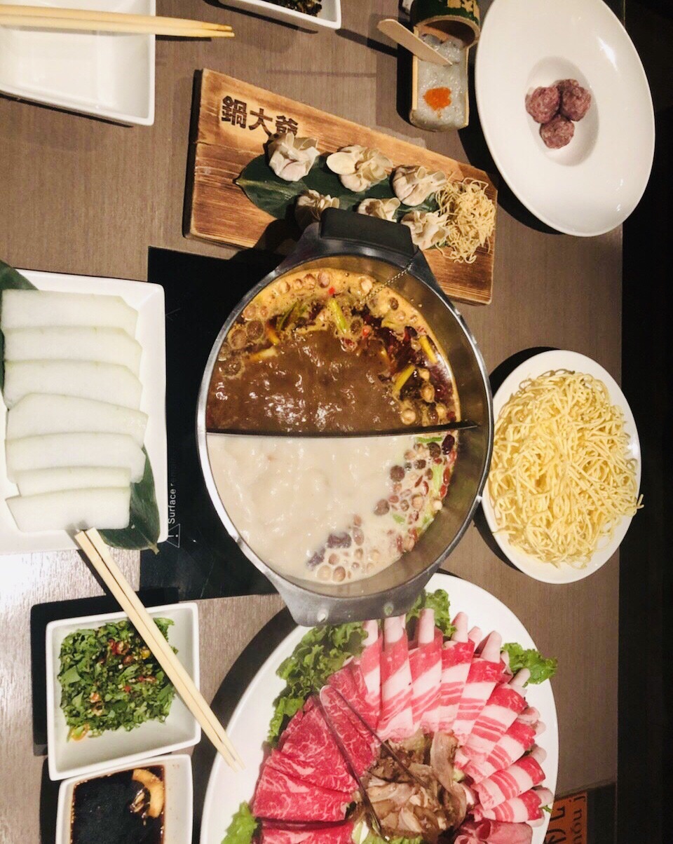 纽约法拉盛锅大爷,服务环境好,目前人也不多,基本六点去都直接有位置,锅底是麻辣+药膳,2个人点4个菜就够了,吃多了不腻,特调的蘸料有人喜欢有人不爱,但也是一特色,是夏天吃火锅的好去处,冬天还是喜欢香天下的牛油。