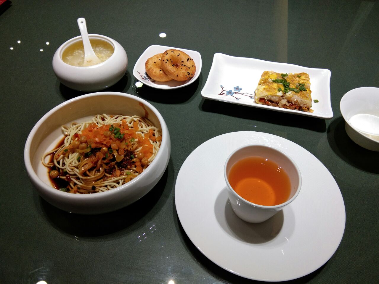 学院近旁酒店3楼。原天价49元武汉4小吃套餐,团购特价29元,实际菜牌价也差不多,“原价”是虚张声势,茶位5元另付。俺在武汉户部巷小吃街吃绝对不超20元!四大名小吃――热干面、三鲜豆皮、桂花米酒汤圆、小面窝。基本能保持当地特色风味,用料也更足更好些,卖相也更漂亮!也是暴利的必备外衣!唯独三鲜豆皮并不是豆腐皮,用蛋皮代替,失去了传统风味特色。
