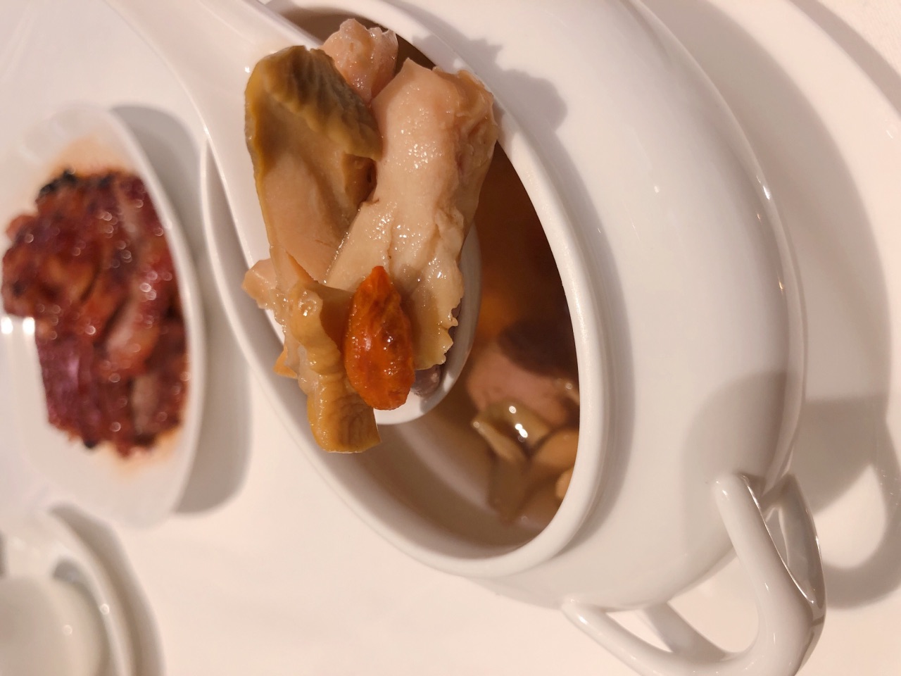 【前言】 前身是“福临门”,退出市场后改名 家全七福。价格也相应调低,为了适应上海餐饮环境。 米一和美食林榜单。 打电话,先预定了汤、叉烧和脆皮鸡,确保不会卖完。 【汤】 汤点了两种,一个是响螺汤一个是排骨汤。 「例汤」是排骨汤有点苦味过浓。 「螺头汤」螺头汤料足,鲜甜,味道不错。 【菜品】 「七福脆皮鸡」招牌。外脆里嫩。美中不足的是,鸡肉如果先进行低温慢煮处理,会更入味。 「蚝油叉烧」据说也是招牌。但是出了个小插曲。第一盘,上来的非常非常老,太精了,一度怀疑是老母猪肉…和服务员提了之后,换了一盘肥瘦相间的,还不错。 「清炒豆苗」不是豆苗季节可能,略老。 「咸鱼鸡粒炒饭」量够大。管饱。 【茶、甜品】 「普洱茶」「生磨核桃露」「陈皮红豆沙」好吃,特别是核桃露,香浓,美滋滋。