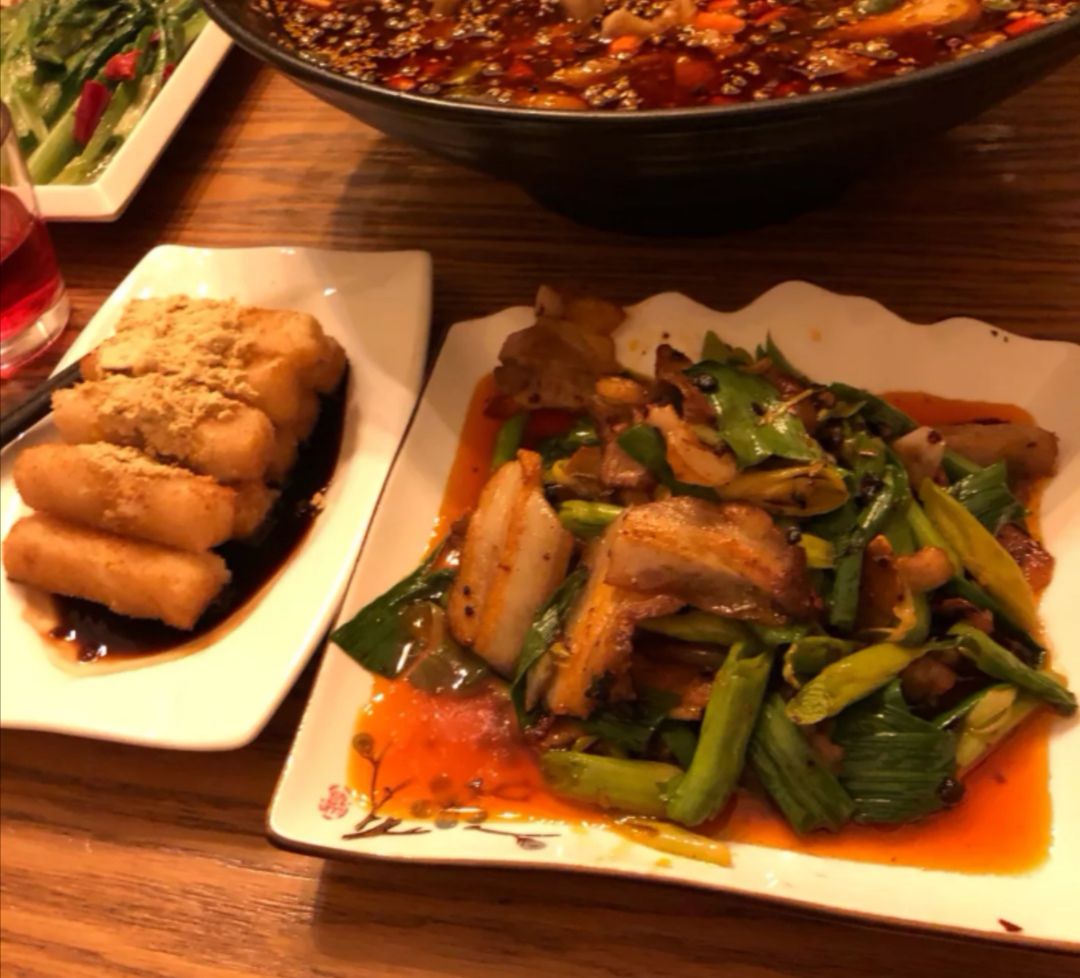 老板的牛肉,超级好吃,牛肉很多,下面的杏鲍菇豆芽萝卜都很入味。 激情鱼蛙恋,点的龙利鱼,好嫩好好吃,牛蛙挺多的,块也不小。 毛血旺,毛肚很脆,鸭血很嫩。 回锅肉,一点也不肥,很香。 红糖糍粑,香香甜甜的,好吃。
