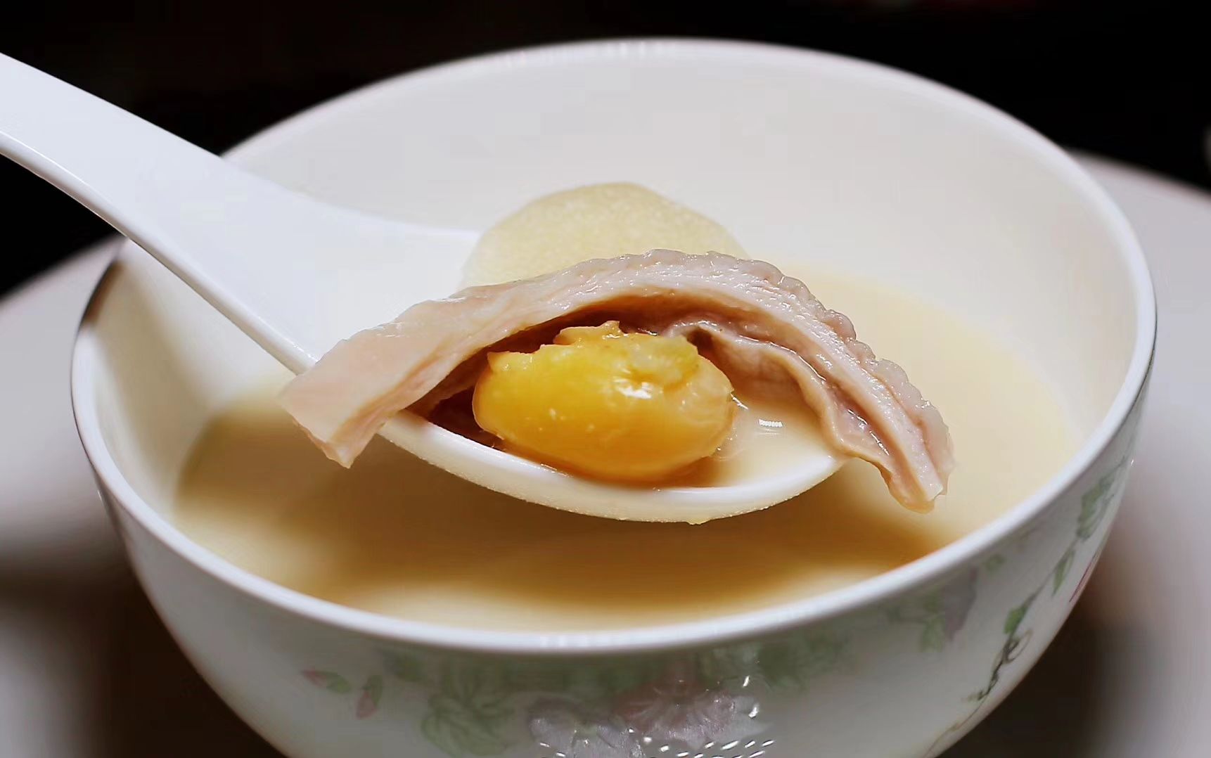 这家叫花城苑,以前开在一个小区里面很偏僻,没有名字的小店干脆就用小区名字花城苑来命名,后来搬迁开到这个大商场里面,老板喜欢做一些老味道的粤菜,比较本土化。 招牌是豉油皇大肠头,我属于肥肠爱好者,这个真的做的很好,香糯回甜,下干饭更美;猪肚汤里面有马蹄莲和白果,炆火慢炖得很浓,花时间那种与隔水蒸的区别还是很大的;烧鹅属于老式做法皮不会那么脆,但是汁水很浓;咸蛋黄炒凉瓜这个菜很有意思,软的苦瓜外面挂一层咸蛋黄,口感和香味都有;特别推荐香煎藕粉,有细微藕的颗粒感且细嫩,里面还夹着虾米和肉末的感觉。
