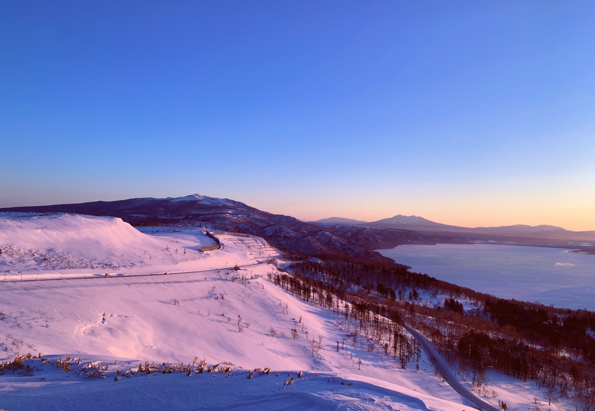 美幌峠是弟子屈的一个观景平台,站在最高处,可以把阿寒湖和屈斜路湖的美景都一收眼底。 这里夏天可以坐eco bus到达了,冬天是没有公共交通的,只能包车,自驾或者参团。我们是报了旅店的一个日出团。虽然早上非常非常冷,但是真的非常值得,日出美的不要不要的,肉眼看原比相机拍摄出来的要美丽。