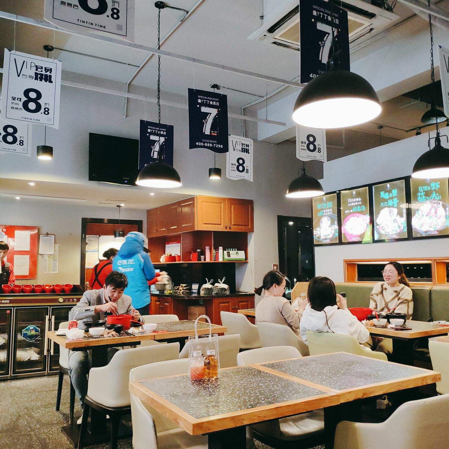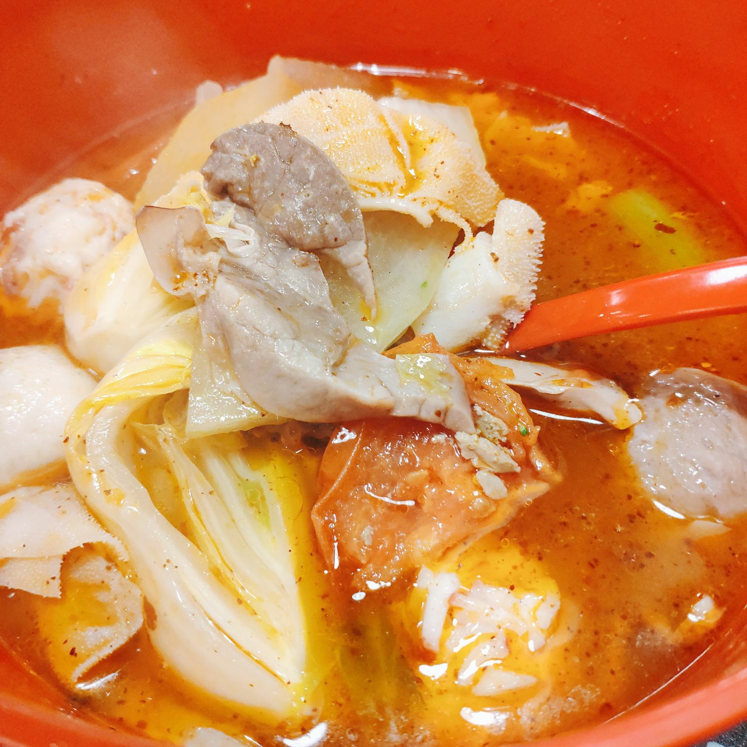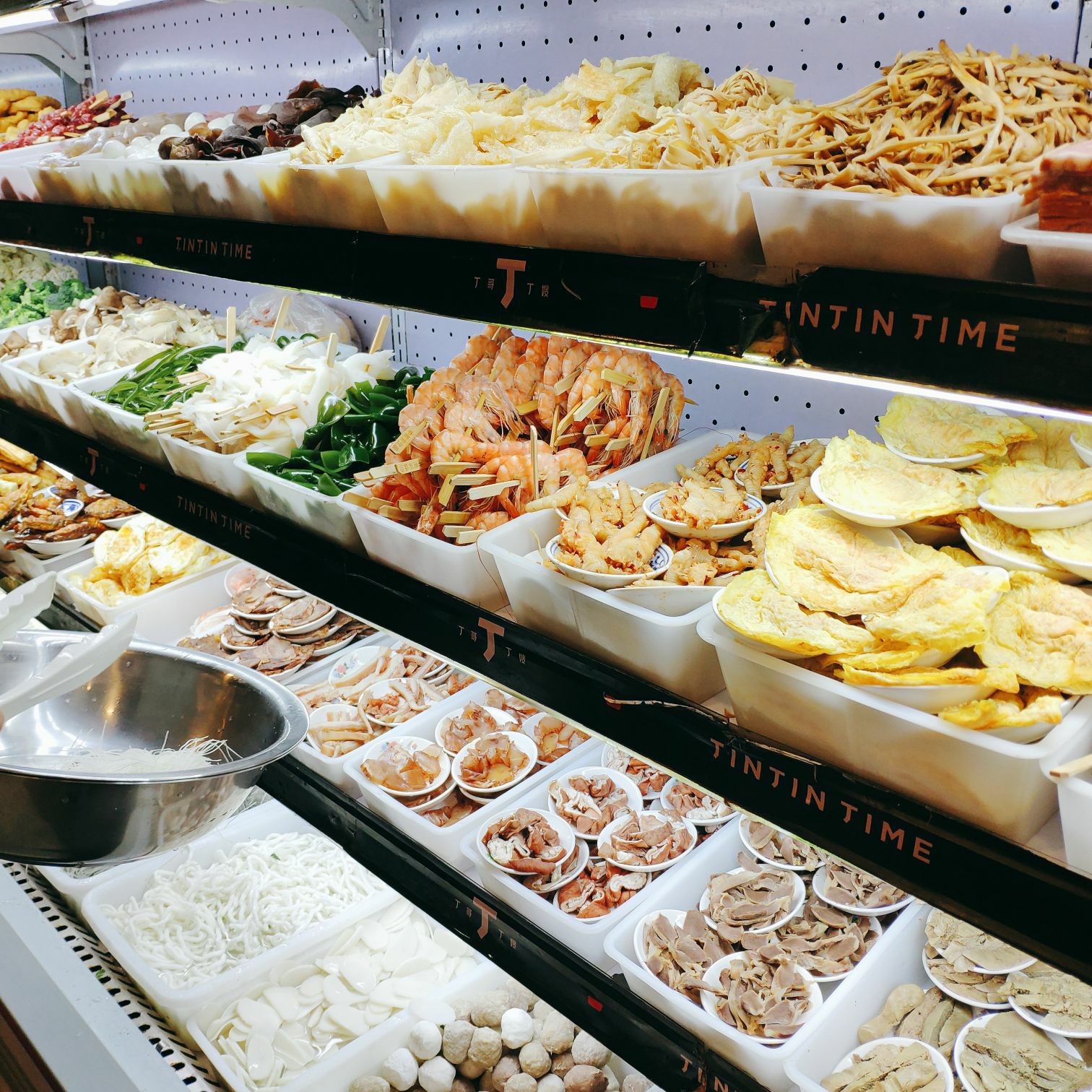 朋友介绍过来的,据说这家是总店,进门左右边被震惊了,哇塞,一排一排的食材很新鲜,是我吃过那么多的麻辣烫中最豪华的存在,菜品种类很多很多,光肾脏就已经比一般麻辣烫的都要强。而且海鲜还很生猛,简直是麻辣烫控的天堂。 挑完菜之后,就去前方柜台买单,橱窗还有好多卤味:猪蹄,鸭头,鸡爪。。。。感觉它家菜品可以吃一年不重样。难怪说是麻辣烫界的LV级的存在 朋友说这家总店的出品比其他分店都要好吃,所以第一次来就直接来总店了。 拿了号码牌,在等待的过程中,在先把调料调好,都是自助的,除了等菜品让服务员端过来,其他手动操作。 等了大概十分钟左右,我的豪华麻辣烫到了,我点了天鹅贝,16两只,是分开端上来的,直接上来葱油砂锅天鹅贝,不要太香了,那热气腾腾,听着那滋滋滋的声音,食指大动。 因为菜品新鲜,所以十分鲜甜!!! 我的麻辣烫里面有小白菜,猪肺,牛百叶,青菜,虾丸,番茄等,都好入味,感觉我那个酱料白调了啊。不过我朋友讲鸡汤汤底最好吃,下次我要打卡一下鸡汤汤底和猪蹄!