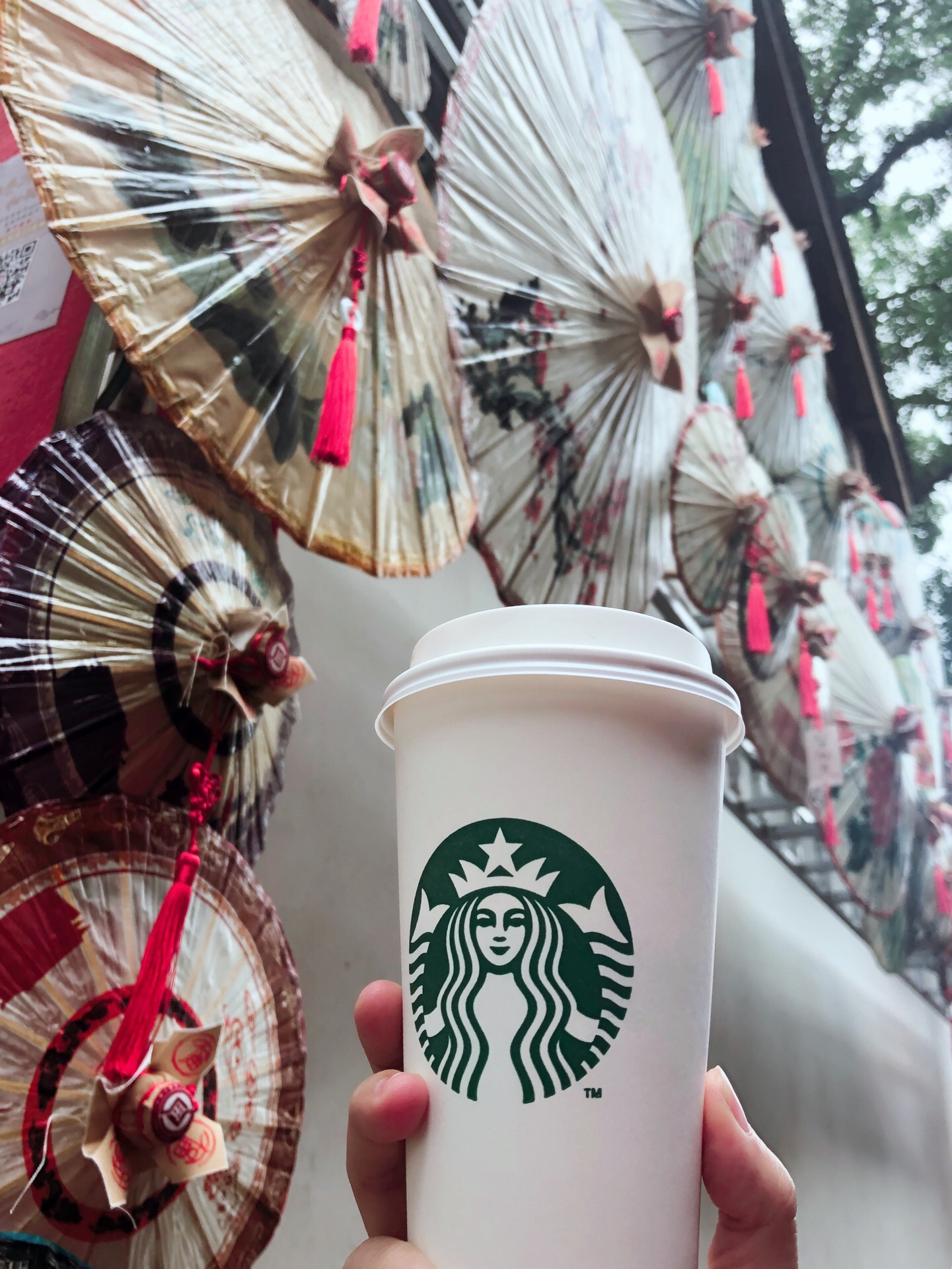星巴克南后街店位于三坊七巷内,冲着环境就打五分,古香古色的装潢,进去后面还有个小院子,闹中取静挺不错的,很适合停下来休憩一下,环境也好适合拍照哦。 上次来还是三四年前了。时间真的是飞快的说。 点了拿铁,朋友点的玛奇朵,味道标准化的也没啥好说的,冬天来一杯暖暖的还是很不错的。 店员的服务态度也不错,总体感觉挺OK的。