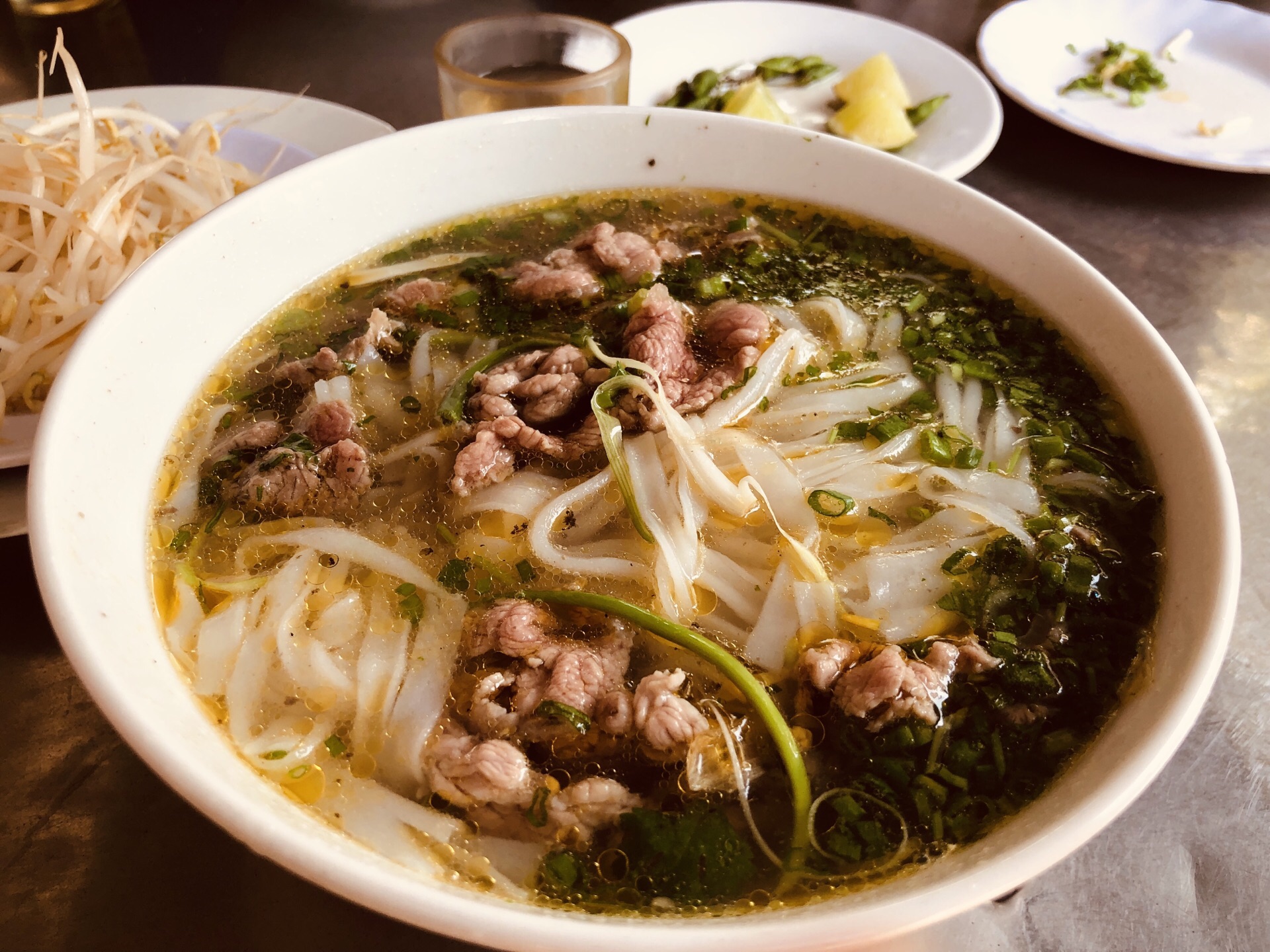 这家就在喜来登酒店后面,走路3分钟(看最后一张图[呲牙] 本来已经对芽庄下pho没什么期待了,但是这家还是不错,米粉就该有米粉的软度[悠闲] 汤就应该有汤的鲜度(吃完口不干) 加上辣椒、一点鱼露、一点九层塔,再挤上那么点青柠檬汁,完美[礼花][礼花][礼花] 酸奶的原味比紫米还吃,紫米的有酒的味道,是有点特别不同。 中午吃的时候,local也有那么几桌,不像之前天去的几家餐厅都是国人[嘿哈][嘿哈]