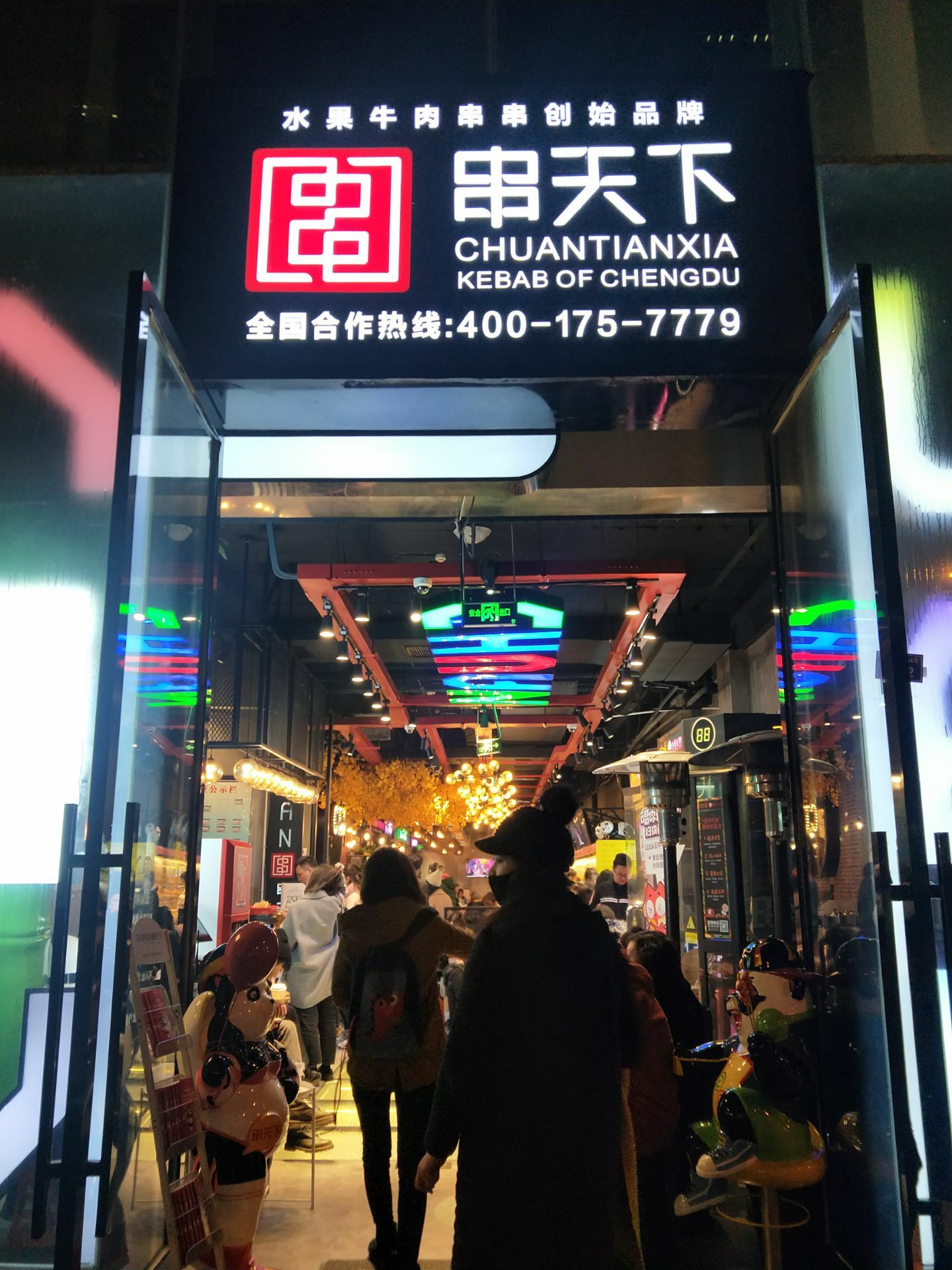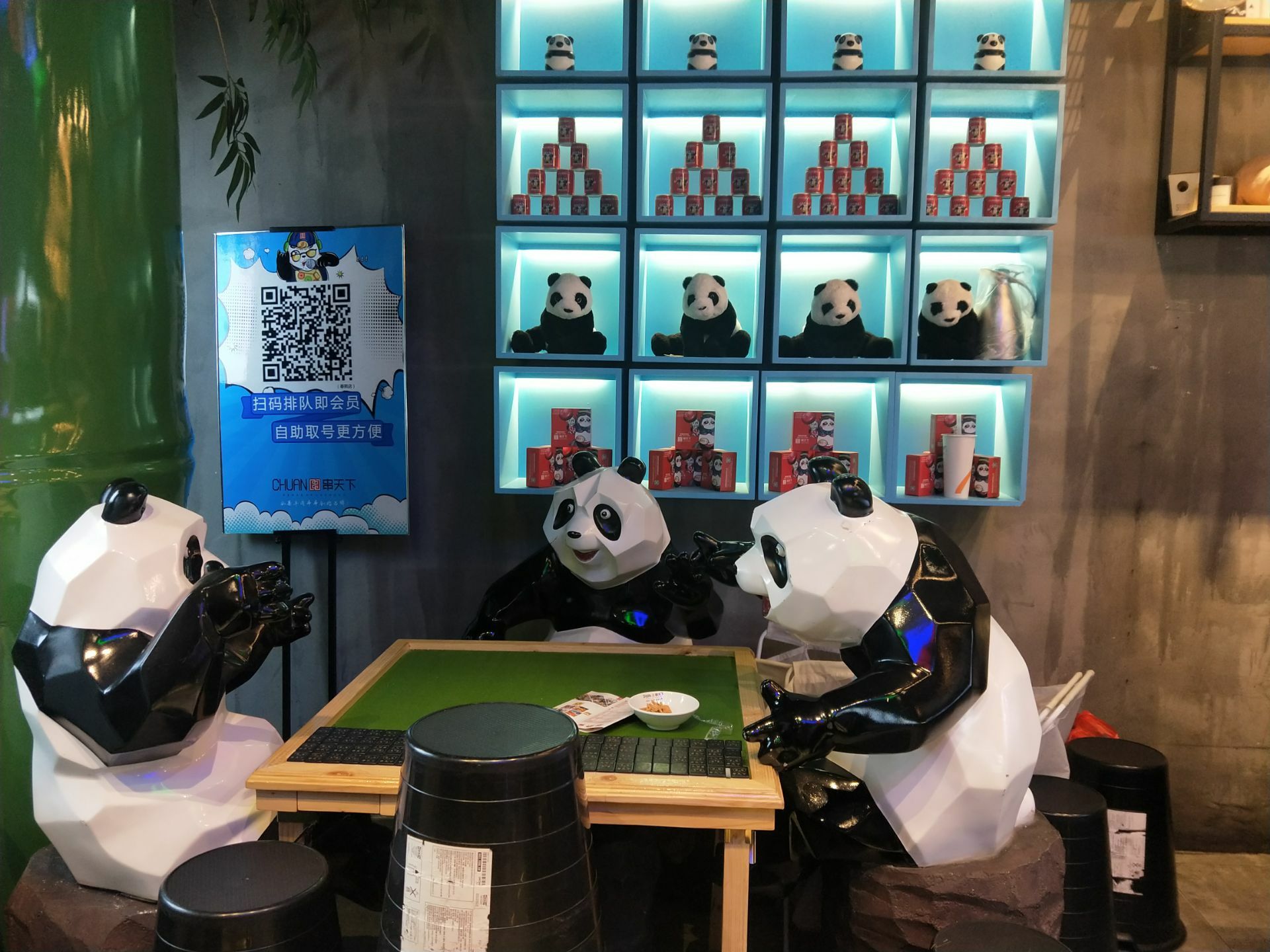 成都人气最旺的十大串串店之一。北临春熙路,西接太古里,地段位置很好,水果牛肉串串是这家的招牌特色。店里有免费使用去味机,可方便吃完吹走衣服味道;店里也有娃娃机可以免费玩方便等候;店门口还有熊猫打麻将的巴蜀四川元素可以拍照合影留念。这家串串味道是可以的,在成都性价比高,值得推荐!