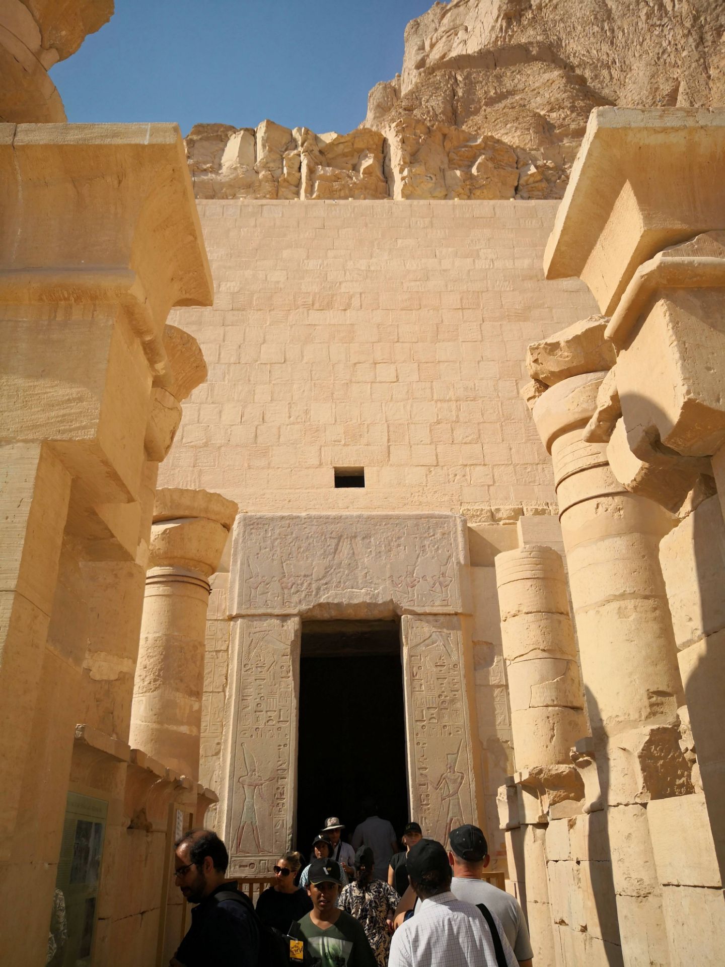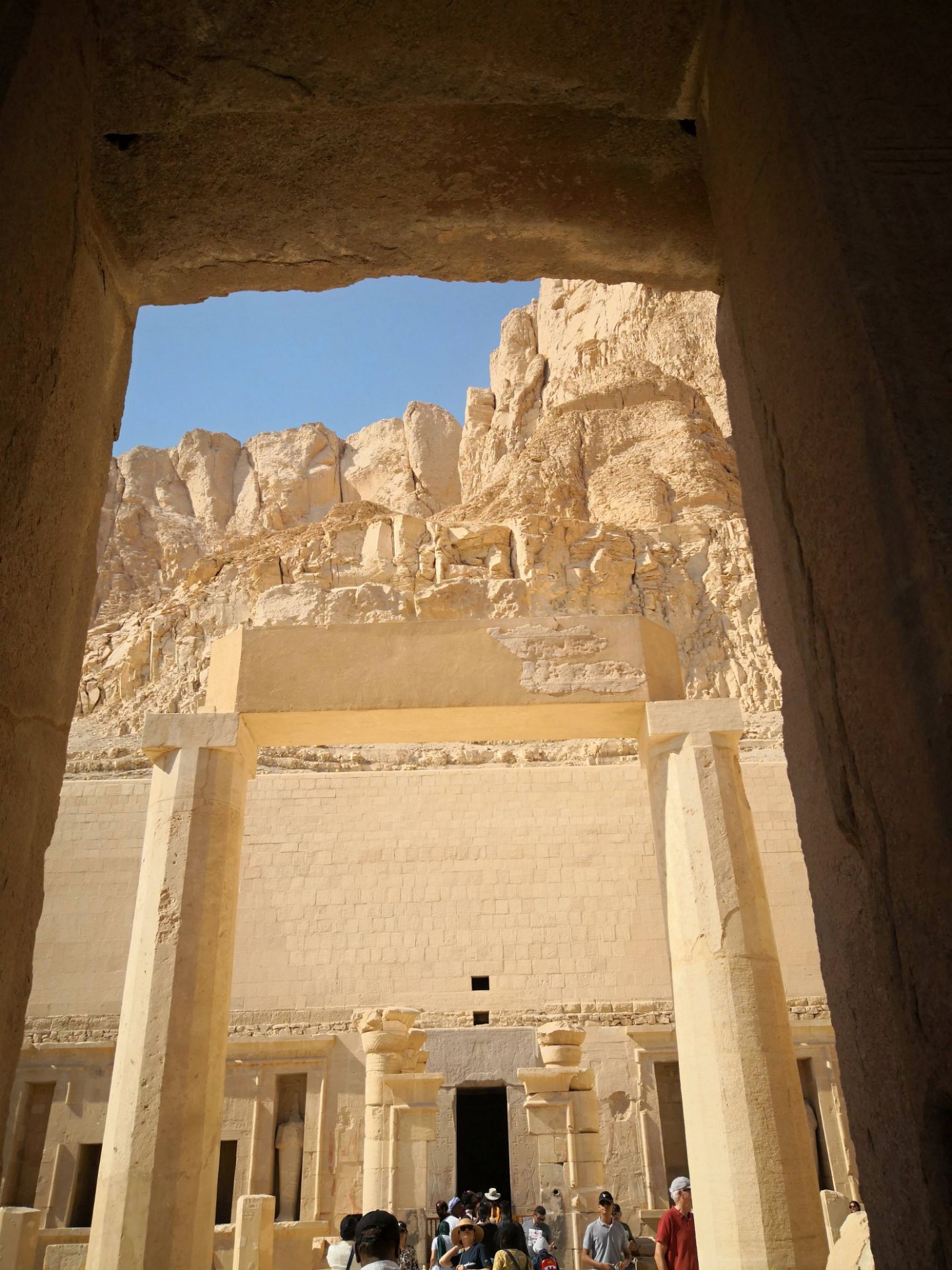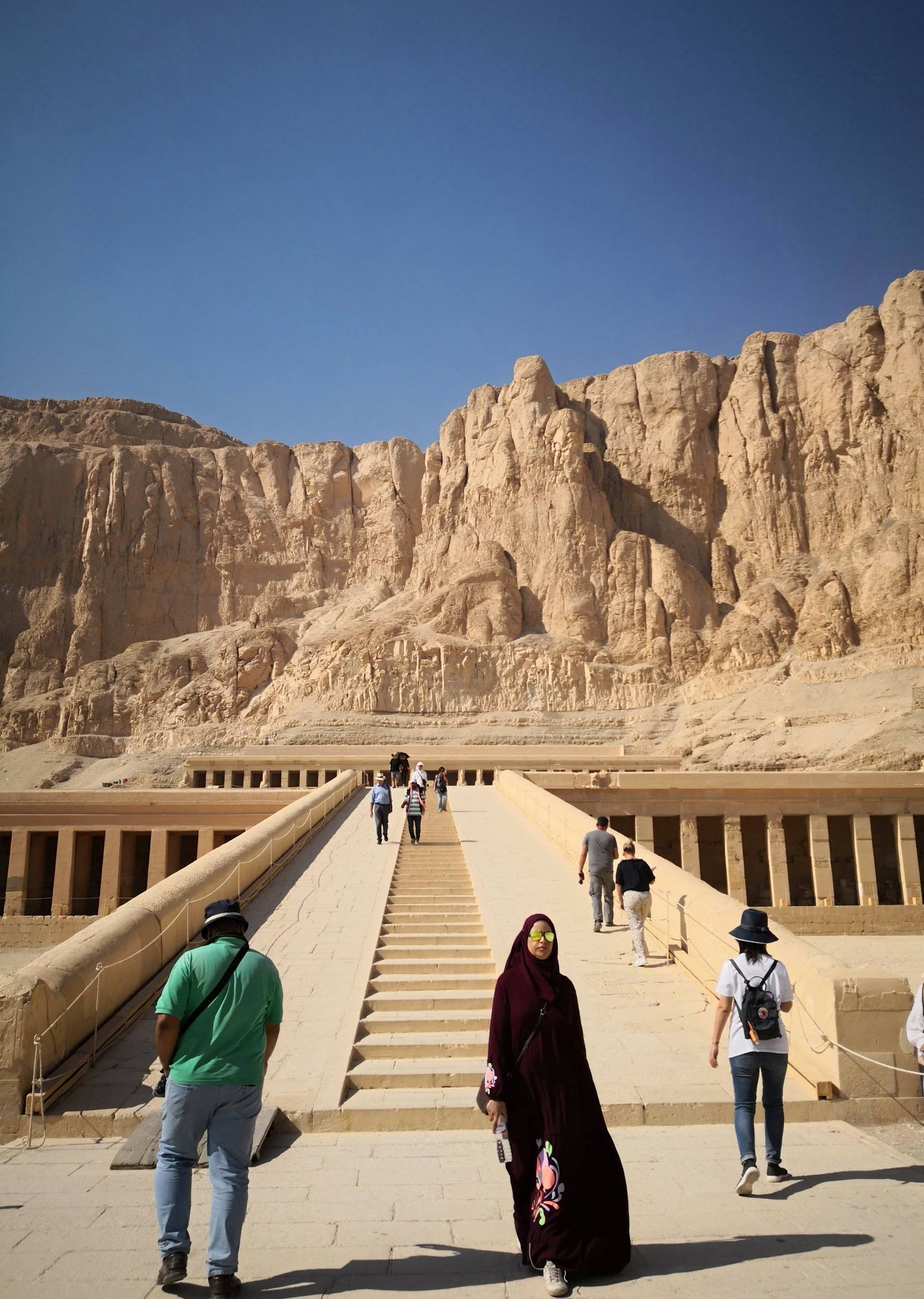 女王庙不同于埃及的其他神庙,它是一个三层的建筑结构,是埃及哈采普苏特女法老的墓。女王是第十八王朝法老图特摩斯一世的女儿,她是除克莉奥佩特拉以外另一位成为法老的女性。她在位15年的功勋,全纪录在这座神殿内,而且这里有许多女王的雕像,以男人形象出现,在男权社会女王也只能如此,距已有3000多年历史。女王的狮身人面像遭到人为和自然的破坏。