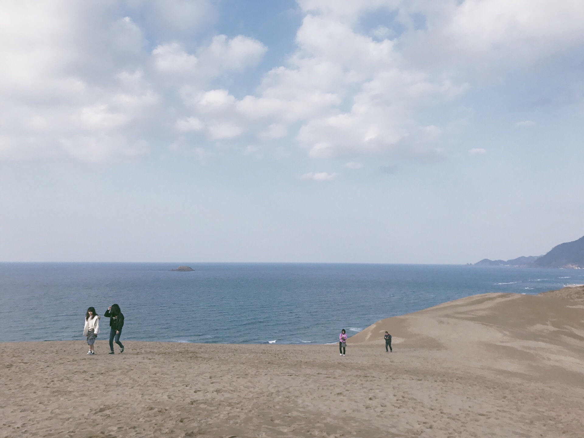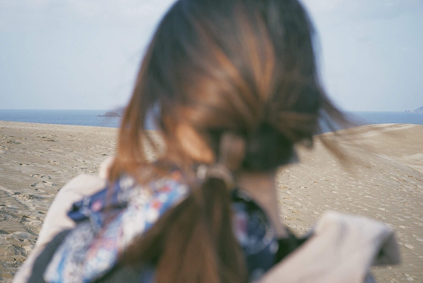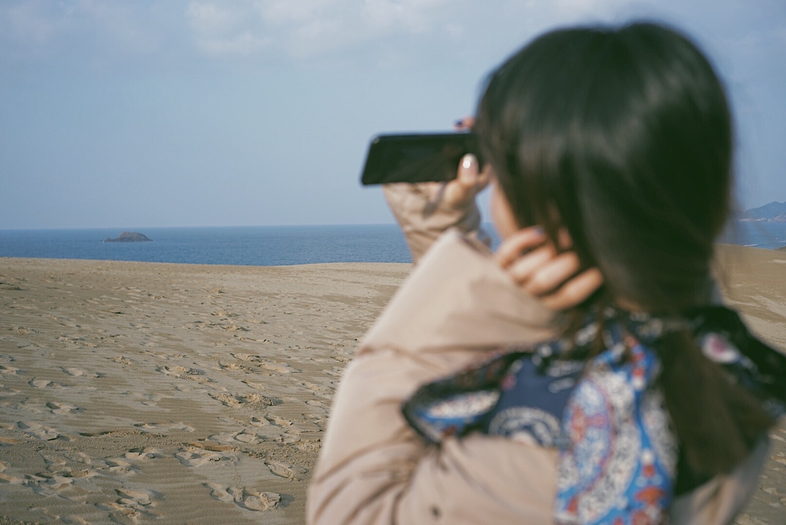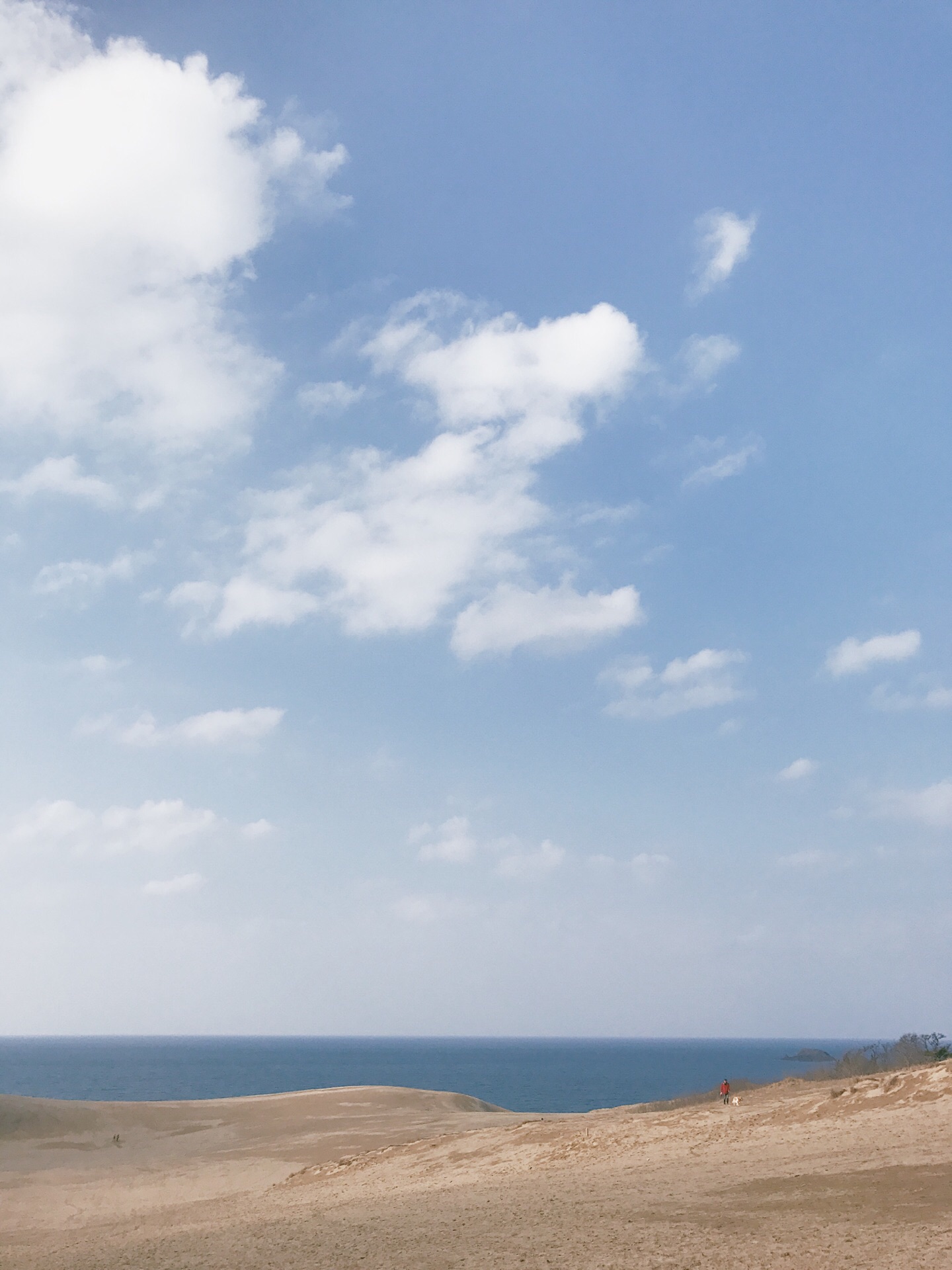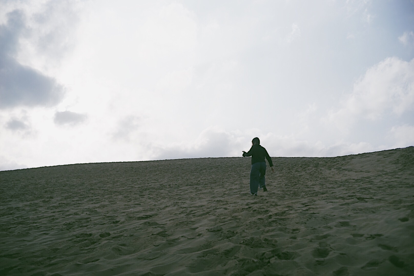 JR鸟取站换公交车到鸟取沙丘站约20分钟车程,专门来到这里看看一面海一面沙丘的景色。 这里可以从观景平台购买缆车票下到沙丘游玩,往返票JPY300,缆车很简易,站在指定位置然后坐下,没有任何保险杠,下缆车也是野路子一样直接跳下来,很有儿时的感觉。 沙丘夕阳下很美,登高至顶端,可以望见大海,而植田正治最最出名的沙丘剧场就是在此取景,简易的黑白图案,讲述了有一些无厘头喜剧风格。 “不管转到哪个方向,总有某些东西等着我去按下快门。”—植田正治 可以准备好各种装备来拍照啦。