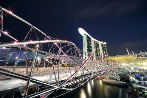 网友2019-03-04这便是桥俩端的景色,夜空下的摩天轮, 像是一枚发光的蓝色钻戒。很多攻略上都会特别提到这座桥很多攻略上都会特别提到这座桥。这是进入金沙购物中心的必经之路。很有特点的一座桥,晚上的时候,闪着小红灯,很好看。这便是桥俩端的景色,夜空下的摩天轮, 像是一枚发光的蓝色钻戒。