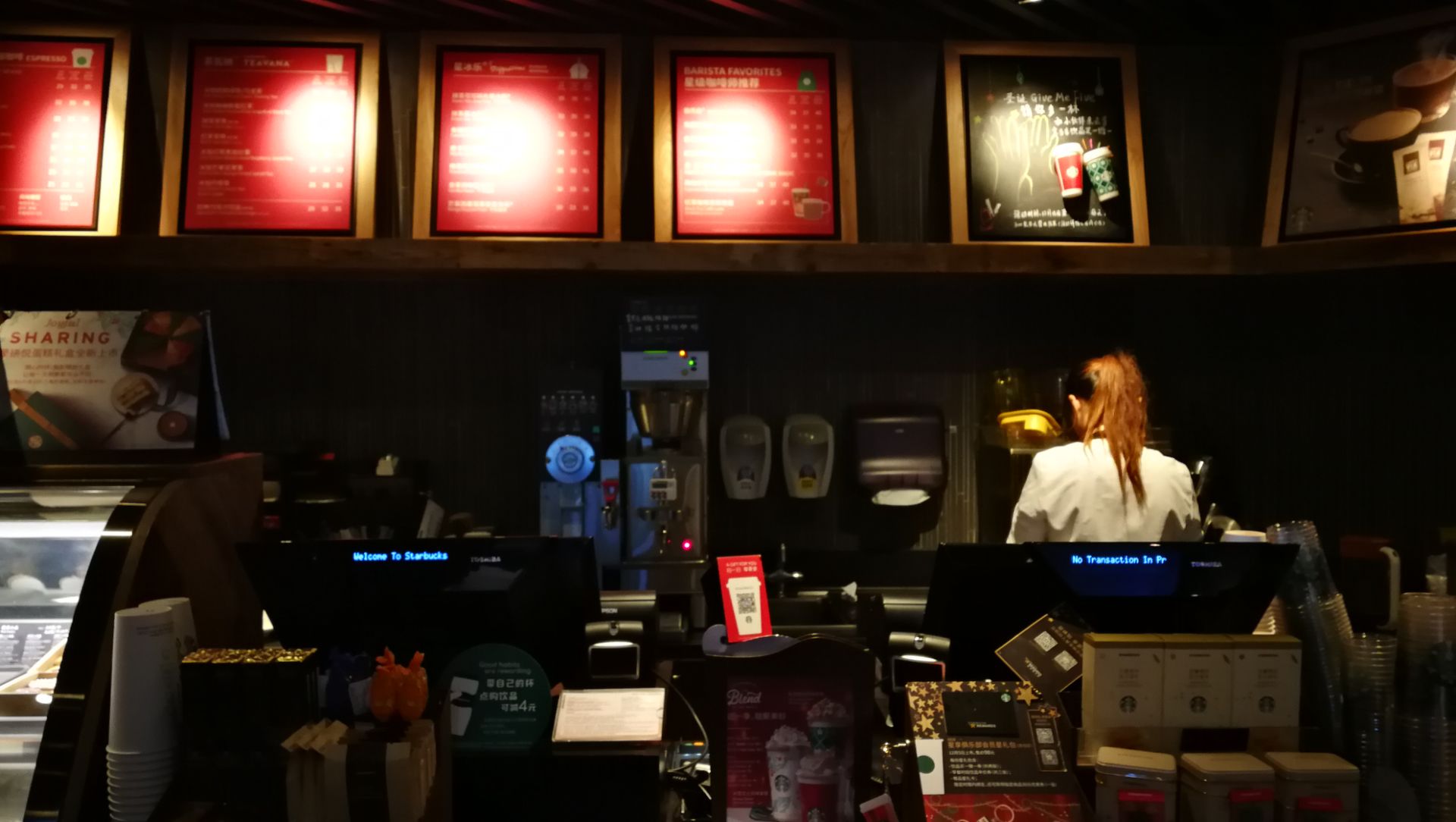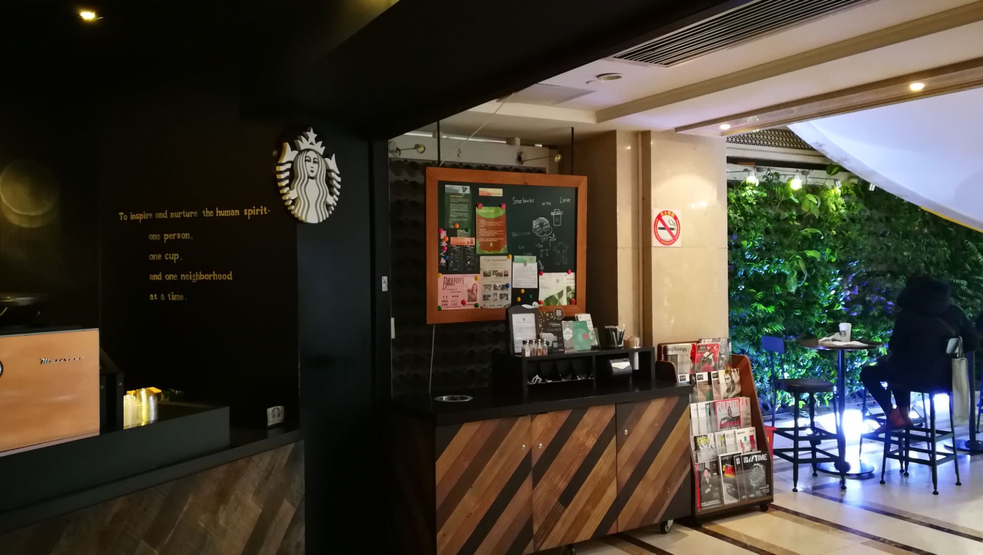 虽说官方的名字是星巴克中金国际广场店,但你要是在沿漕溪北路的中金国际广场百脑汇里找是找不到的,实际上它是在背后的A楼,也就是新华中心的底层,必须绕个大圈走进去,估计除了里面上班的,一般人根本不知道这里还有一家星巴克。也因为这样,在徐家汇各家星巴克人山人海没位子的时候,可以考虑到这里来坐坐,很幽静。空间不大,部分空间还在螺旋形的楼梯下方,环境还是可以的,室外也有露天座位,春秋日想必是个很好的晒太阳地方。服务生人数不多,顾客一多有时候就有点忙不过来