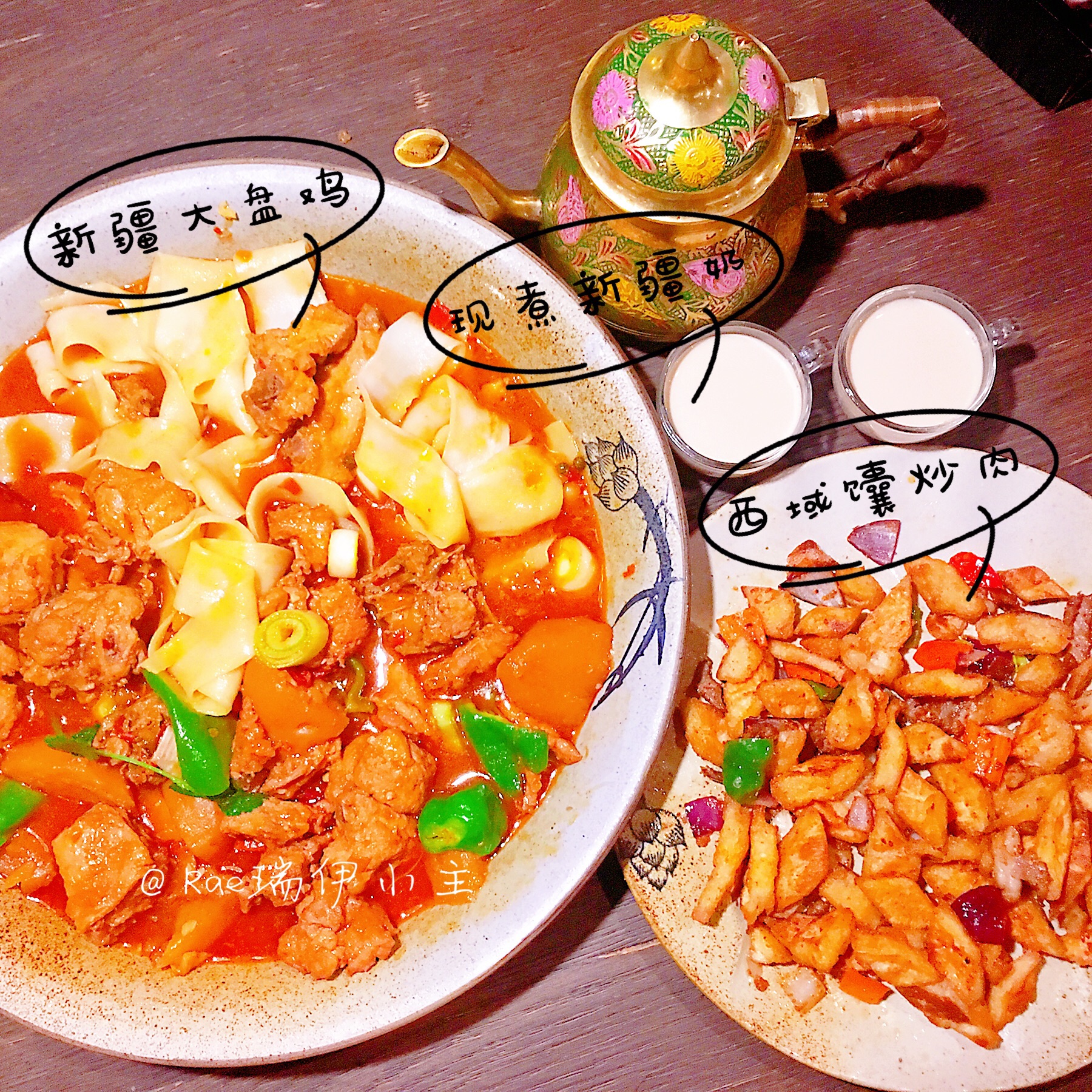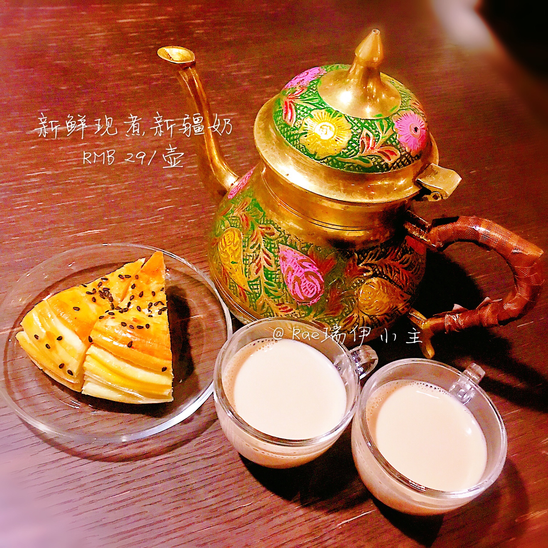 【吃货】2019.2.19 【那时新疆·乌孙】 元宵节别人次汤圆,西兰花先森不走寻常路请本小主次新疆菜 [环境]他家的环境很有西域风情,不管是摆设还是奶茶餐具,如同真的置身于古时新疆 [菜品] ①「新鲜现煮新疆奶」:奶和茶的比例刚刚好,香甜,而且茶壶超漂酿❤另外还搭配两块小糕点 ②「新疆大盘鸡」:真正的大盘鸡,盘子比脸盆都大,鸡肉很嫩,鲜而不柴,但是炒鸡辣有个建议就是能不能分成大份和小份两个档次,如果两个人去吃的话,这一个菜就管饱了,就不能尝试别的菜了 ③「西域馕炒肉」:吐血推荐,也太好吃了,难得一个主食得到本小主好评,一口一个香香脆脆的馕,根本停不下来 ④「烤包子」:小巧的三角形,羊肉馅,很管饱 ⑤「九宫小巴扎」:有颜值的噱头菜,九个格子中有牛肉,坚果,果脯,坚果,配菜和小糕点 ⑥「红柳烤肉」:肥瘦相间,肉香四溢,好吃是好吃,可惜性价比有点低,觉得小贵 ლ(´ڡ`ლ)元宵节次饱饱