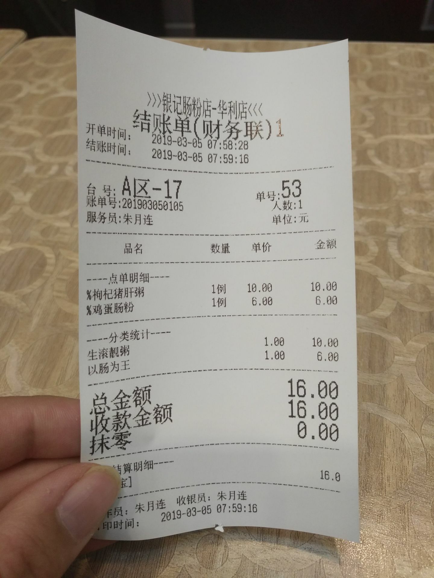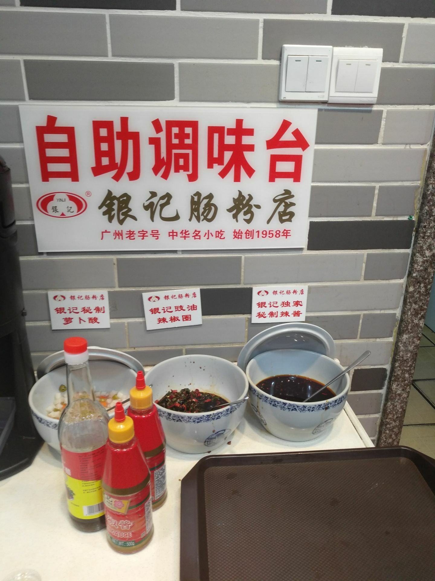 每一次来广州都会尝一尝应急肠粉,这一次也不例外。跟着地图来到了这个华丽店,门店不大,多少有些失望。失望的原因不是因为肠粉的味道,而是因为品类不全,点了几个东西都说没有,那为何还要在价目表上显示呢?比如说想喝猪肝粥,就没有只有枸杞猪肝粥。 银记肠粉的调料是他的一大特色,特别是秘制的辣椒酱,真心好吃。 在广州生活真心不容易,早餐一个肠粉一碗粥,16大洋就没有了。
