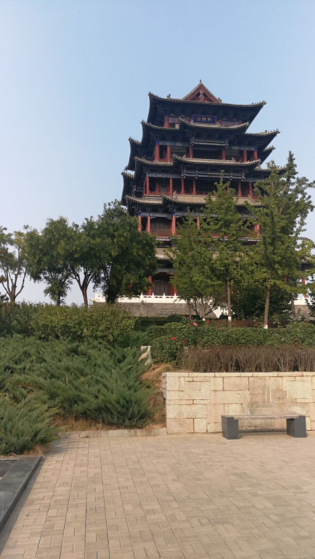 位于迁安市区,滦河水系傍山而行,初秋一些树叶刚刚发出浅浅的黄,点缀在黄台山的绿幕之上,树下曲径通幽处,禅房花木深,拾级而上,一座蔚为壮观的阁楼矗立山顶。台上向下俯视,滦河有如裙带,潺潺流过,水光潋滟,波光粼粼现代化的桥梁跨立湖中,广场中人来人往,顽童嬉笑打闹,老人怡然自乐,一片宁静祥和。