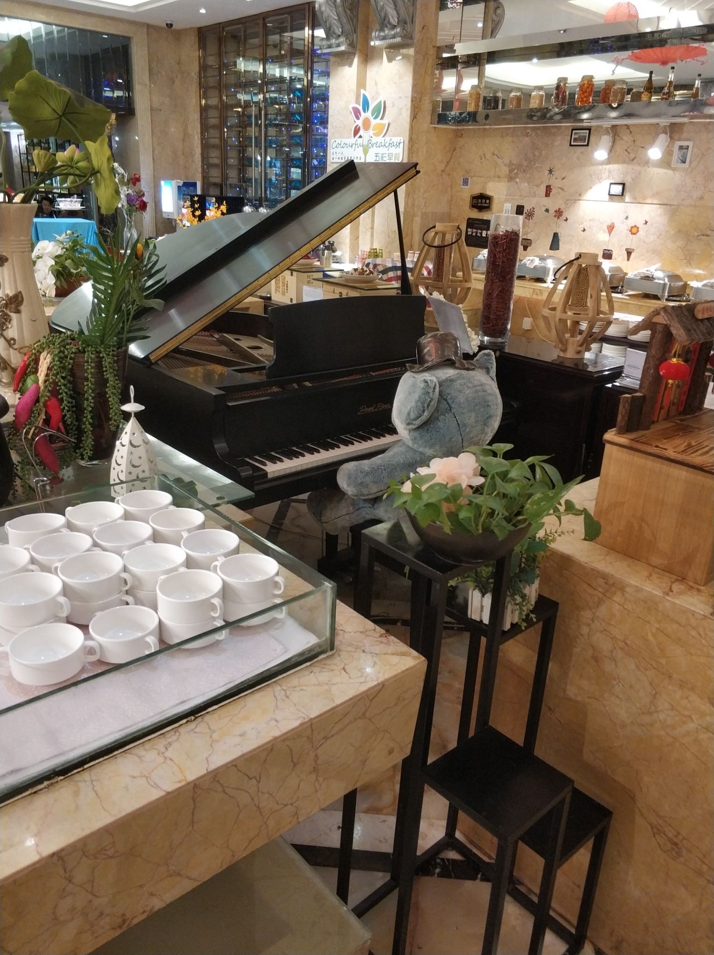 就早餐来说,很丰富,荤素都有,色彩缤纷。环境不错,整洁大方。服务也到位,跟顾客亲切交流就早餐来说,很丰富,荤素都有,色彩缤纷。环境不错,整洁大方。服务也到位,跟顾客亲切交流。背景音乐是自动钢琴弹奏的,所选乐曲适宜进餐。