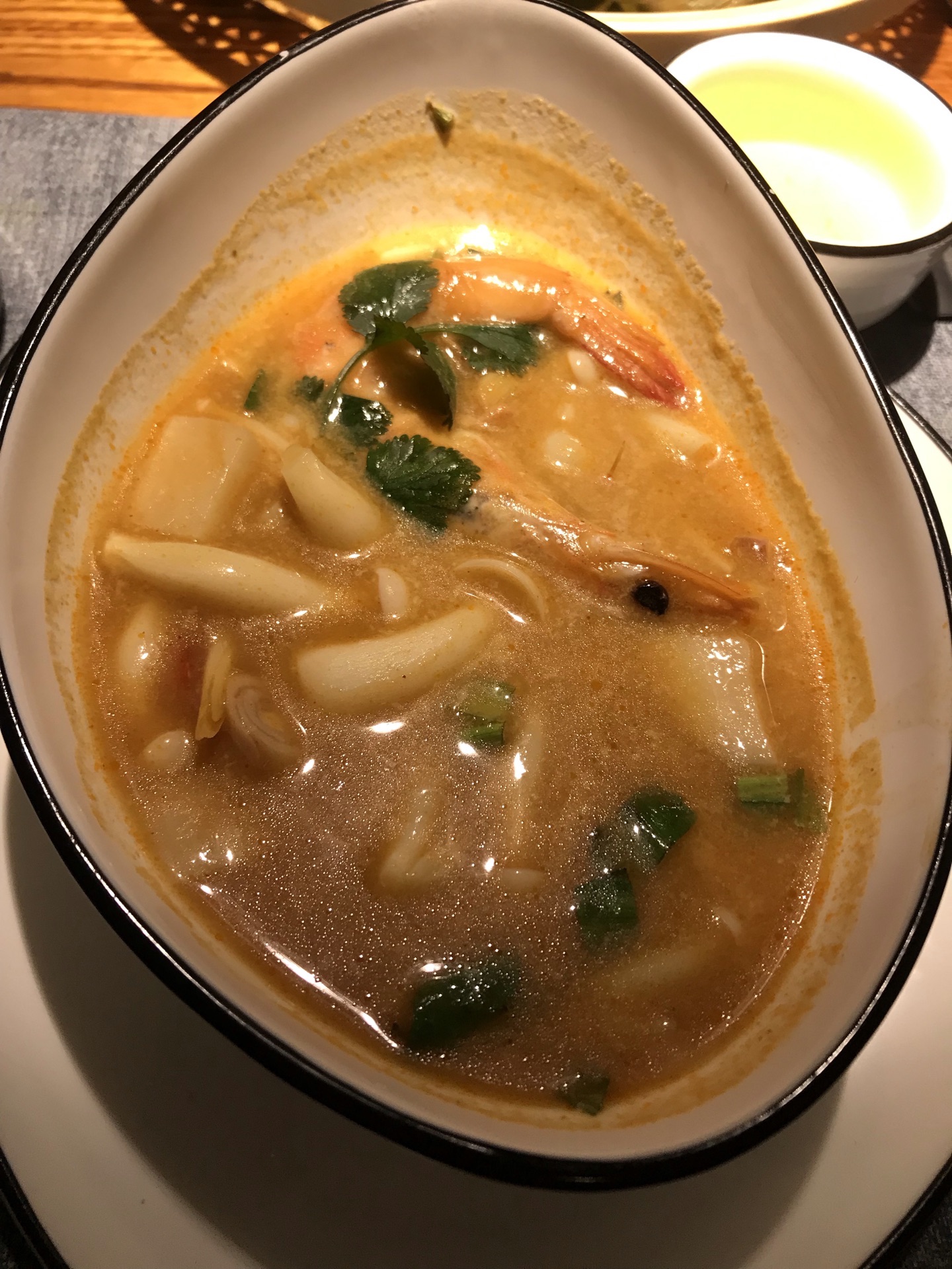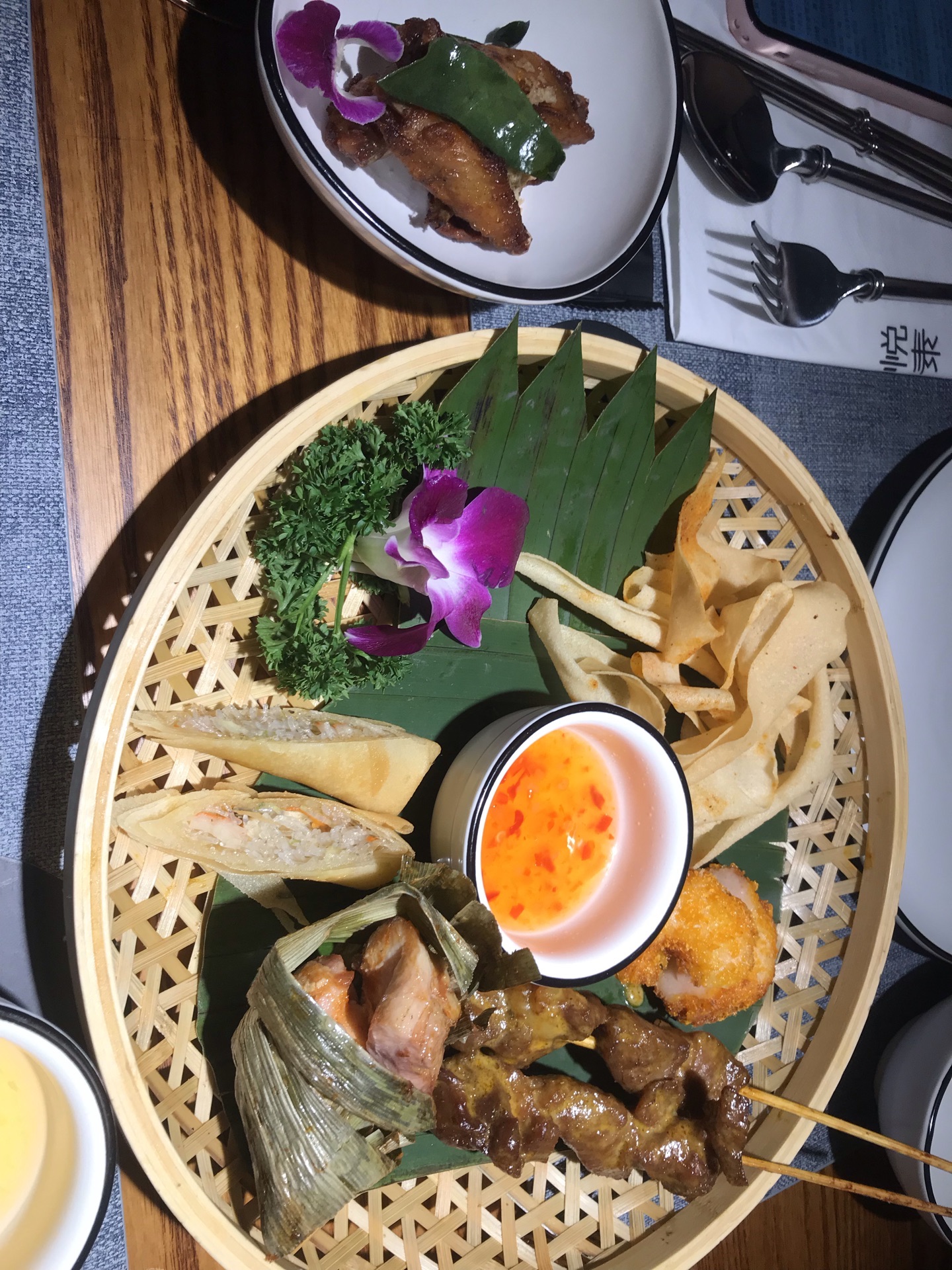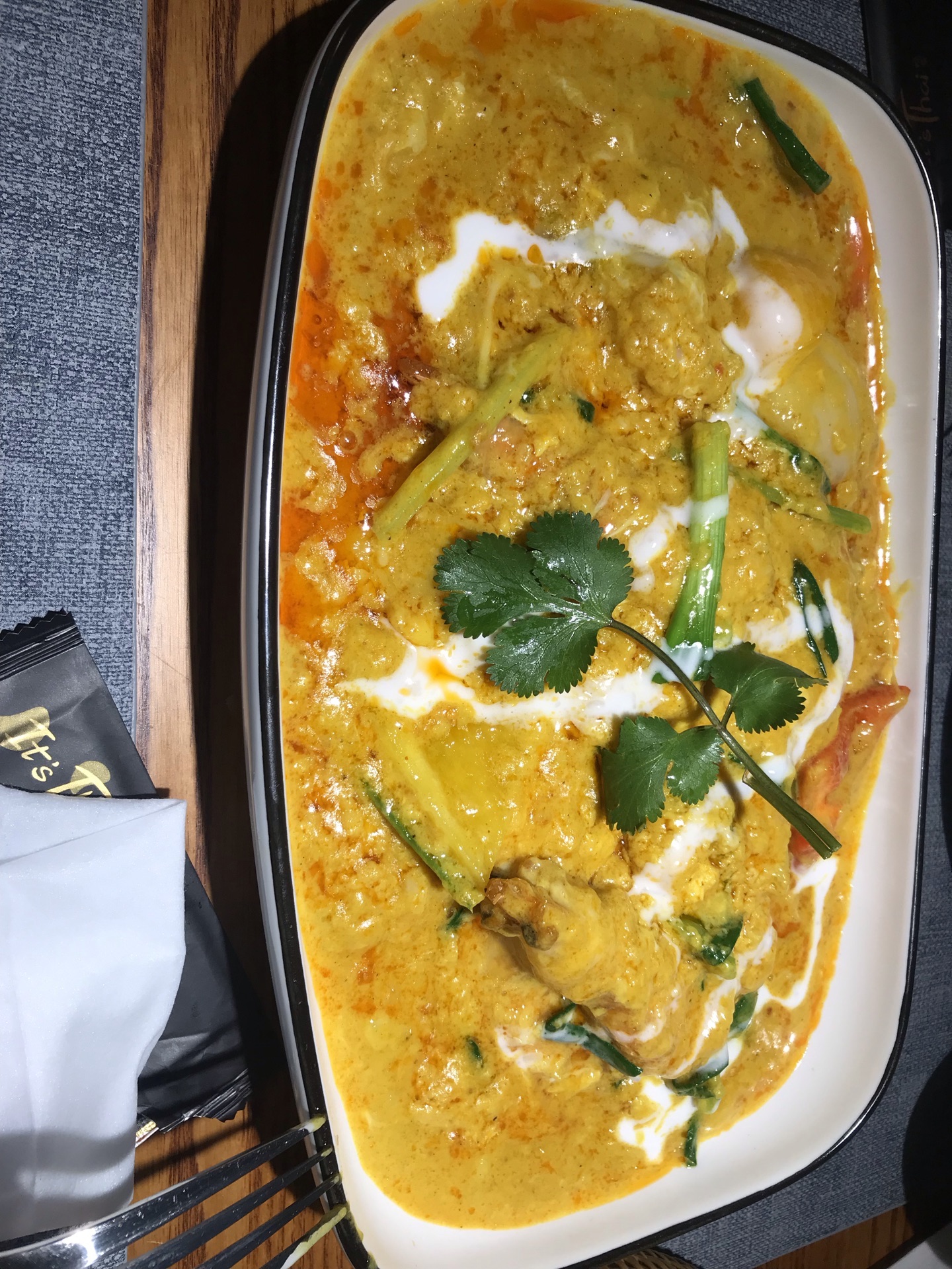 西安作为一个当下的网红城市,好吃的自然非常多!前段听说的泰悦,说是一家很好吃的泰国餐厅,最近前往体验! 直接按W酒店找比较方便!停车可以停在酒店地面(车位不太多,停这里可以装是酒店客人,免费哦),然后就是提下停车场!下停车场刚进入左拐酒店方向,右拐到商业街方向! 餐厅在商业街二层(酒店右边有扶梯可以直接上,个人觉得这个方式最方便)。 餐厅不是很大,有顶幕,基本都是四人,二人位!餐具质感很好!3月6号之前去,只有套餐,498,988啥的! 「冬阴功」这个必须五星好评,我不喝这个汤的(其他泰国餐厅吃过),套餐上来后,尝试一下,然后我喝完了,还准备再来一份[擦汗]「咖喱虾」套餐内容,咖喱非常正宗,非常好吃!虾也不错!「小吃拼盘」内容丰富,不爱吃肉的我表示没有吃完 其他菜表现一般,没有那么好吃 [环境]很好的环境 [服务]非常好的服务,五星好评 总结,个人觉得目前西安非常正宗的泰国餐厅(至少前三,其实我想说第一),推荐大家都来试一下,不喜欢泰餐的朋友我也推荐至少尝试一次!话说餐厅是米其林一星!吃饭时遇到了老板,老板额外赠送了小点心。老板服务热情,人很好!!好了,总之就是推荐必吃,值得专门前往!