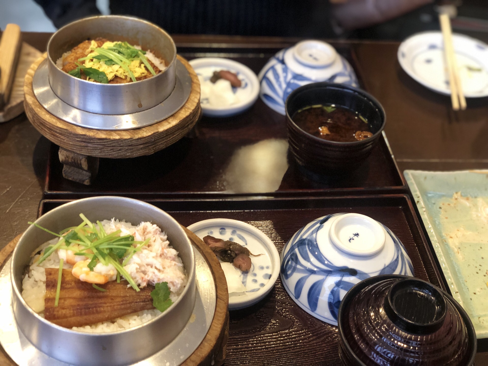 上次一个人来奈良的时候,就相中过这家餐厅,当时排队整整三四圈,只能往返经过后无奈放弃。 这次和宝宝全家旅行时,再次想来吃这家,恰巧回程时排队人群不算很多,于是在约十多人的队伍后面排起来了。 一直下着下雨,排了一会队,会有服务台出来递交菜单,下一次再出来时,她会登记点菜,也是为了方便能够更快吃上饭吧,毕竟这种传统釜饭需要时间。 我们两大一小,宝宝超过四岁了,所以点菜时有最低人消,于是我点了两套招牌点的釜饭和一份蔬菜沙拉,事实证明还是很明智的。 「奈良七种釜饭套餐」 这款是适合新客尝新的,基本上店内所有招牌的都在其中了。 「鳗鱼釜饭套餐」 老公点的这套,而且吃到赞不绝口 「蔬菜沙拉」 事实证明宝宝很爱吃,家有不吃蔬菜宝宝实在是不得已啊,每天换着花样让她多吃蔬菜 服务非常殷勤,釜饭也是让人能吃出最初食物该有的味道,很是复古清香,来奈良超级值得打卡的餐厅
