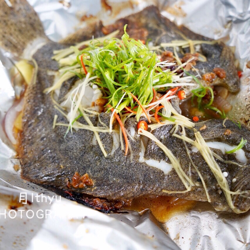 ...,多宝鱼肉多刺少,用锡纸做法,保证了鱼的原鲜味,火候恰到好处的多宝鱼,非常鲜嫩,口感也比较清淡