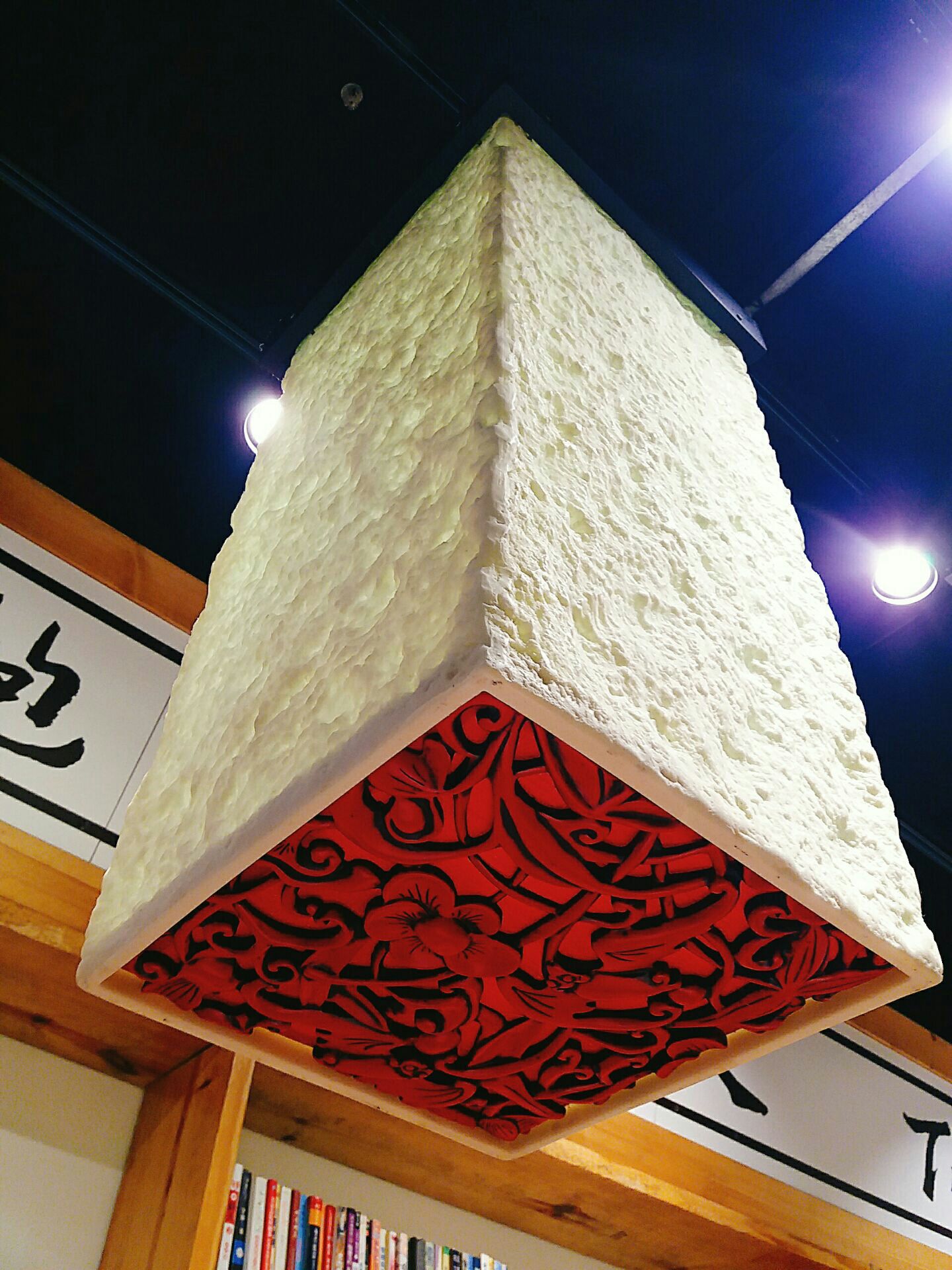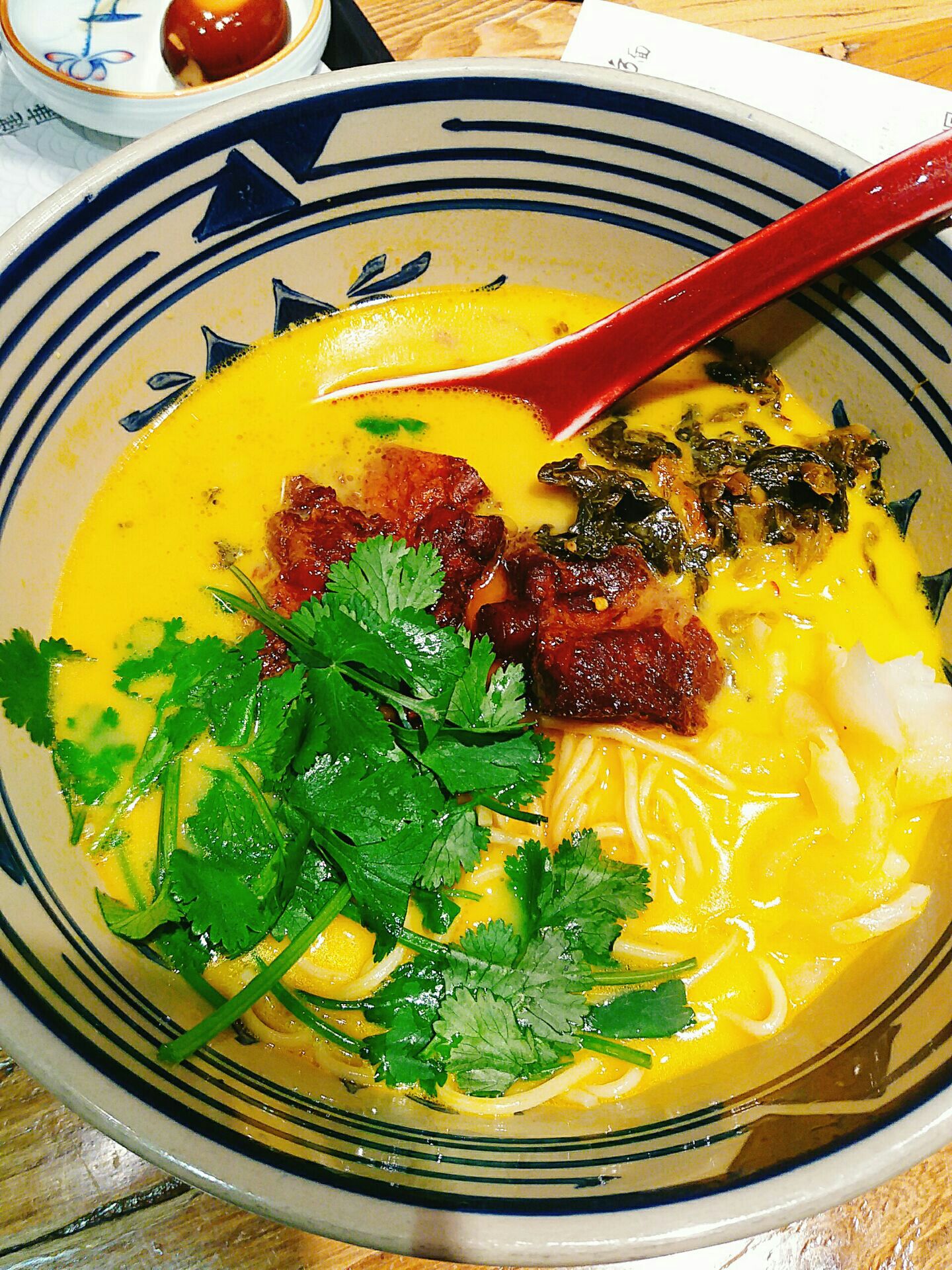 很有特色的店,几次三番想去吃,今天终于也逮着个机会。 店面布置的很有特色。点餐是可以直接面对厨房的。桌位后面放着书,可供观赏。 让人宛如在书房中吃饭,很有艺术性。 捞面特别好吃,汤底也很浓郁,一股养生的气息。糖心蛋也还可以。 并且,这家店的面和汤底是可以再续的,吃到饱为止。