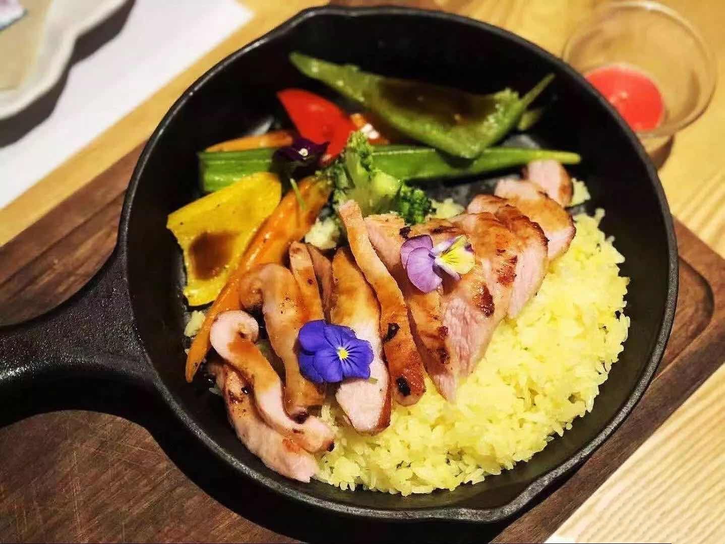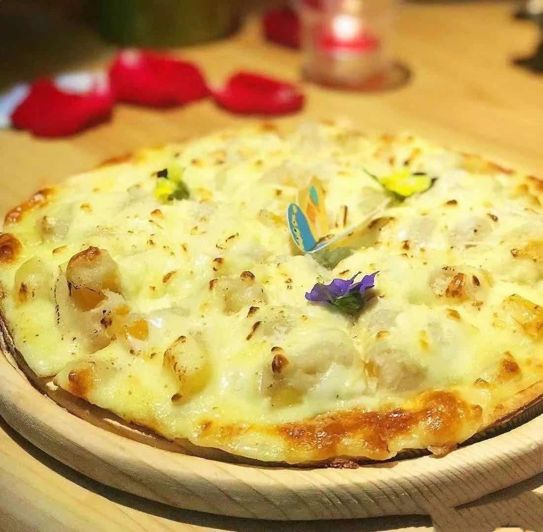 #苏子花艺西餐厅#开在朋友公司附近,朋友推荐说这是一家以花为主题的西餐厅我一定喜欢。 #环境#位置在名门大厦首层,有多路地铁、公交车可到达,交通挺方便。一进门仿佛置身花的海洋,鲜花摆设渗透餐厅的每一角落,忍不住一轮拍拍拍。 #蜂蜜烤南瓜沙拉#南瓜做沙拉还是第一次听说,点菜的美女姐姐介绍这是他家的特色菜,点的客人特别多,试试咯,木盘子盛着大大一盘五彩缤纷的沙拉,南瓜、牛油果、各色蔬菜拌着酸酸甜甜的秘制沙拉酱汁很醒胃。 #慢烤猪颈肉#猪颈肉烤得金黄微焦,爽嫩有汁,油脂丰盈,份量够足啵,食肉兽最爱。 #猫山王榴莲披萨#满满的新鲜榴莲肉、粒粒的鲜果、可以拉丝的芝士、薄薄的饼底完美结合,口感丰富,榴莲控一定要试,有点不足,鲜果切得有点大小不均,容易散落。 #玫瑰酸奶芝士鲜花蛋糕#用鲜花伴盘,又是一轮手机先吃,浓郁的玫瑰花香,哦哦,有种吃鲜花饼的感觉,蛋糕绵密,甜而不腻,偶尔还吃到甜甜玫瑰花瓣,感觉到是真材实料。 美美的餐厅,吃得心情愉悦,朋友果然知我心。