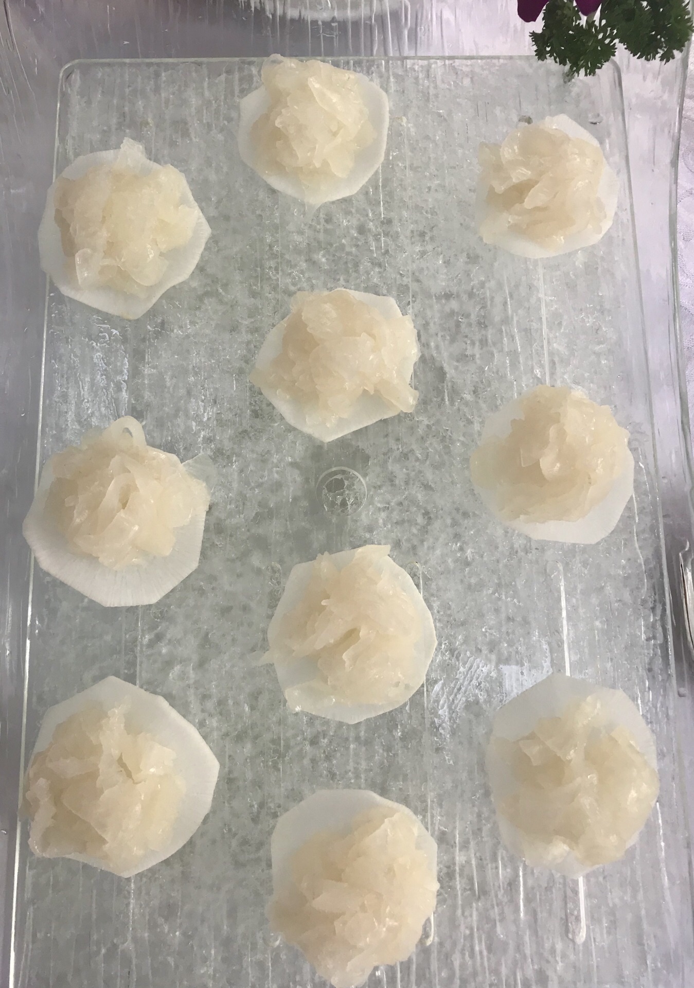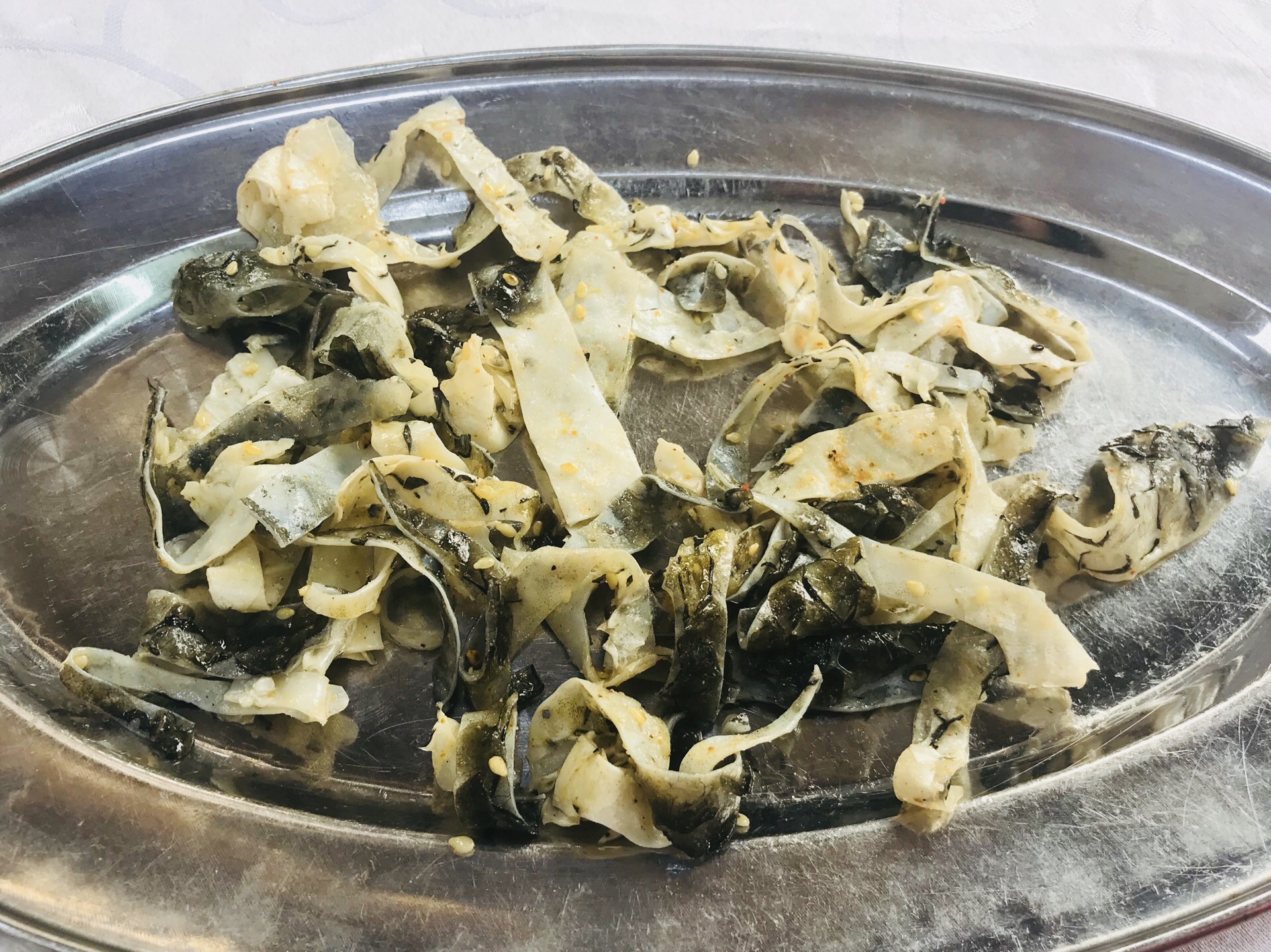 周一的肥光鱼生依旧要定位,没有菜单,只有小份108或者大份115,一鱼四吃,选的草鱼剃出鱼刺做生鱼片,比三文鱼有嚼劲,但还是害怕会有寄生虫,鱼皮腥味没有完全去除,最好吃的竟然是鱼骨粥,价格倒是挺便宜