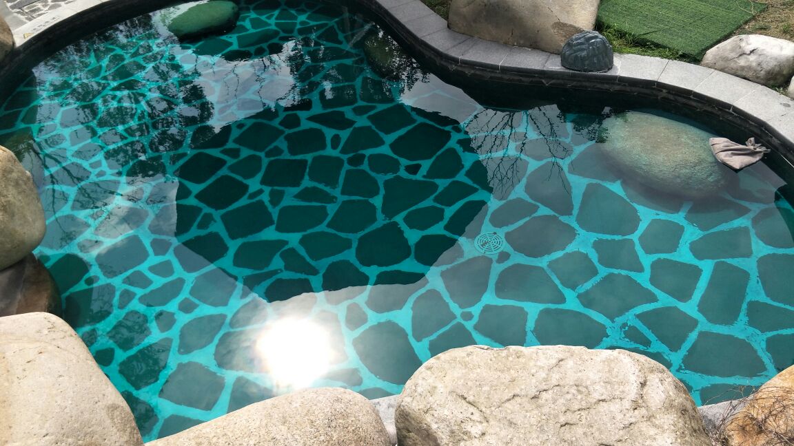 哈哈 又来泡温泉了 焕肤养颜泉好美腻啊 有没有发现泡池是心形的