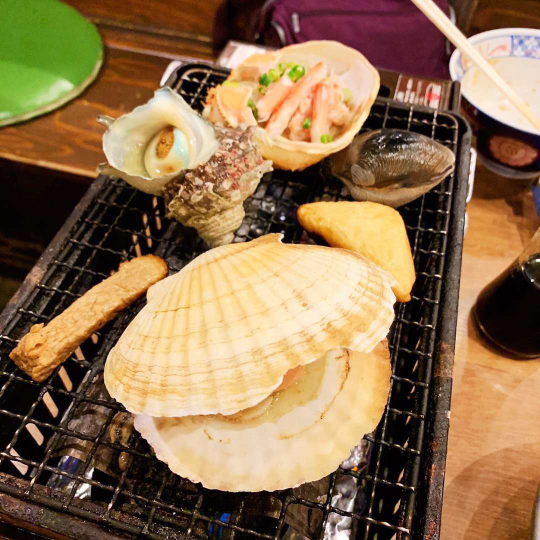 矶丸水产的食材非常新鲜,北极甜虾甜糯;当地海螺烤后肉质,嫩而紧致;而排名第一的烤蟹黄,鲜甜不虚此名! 价格亲民,食用环境轻松,怪不得24小时营业都在排队了。 不过我们是错峰去的,没排队。 整个日本几百家门店,喜欢烤海鲜的朋友吃吃看![微笑]